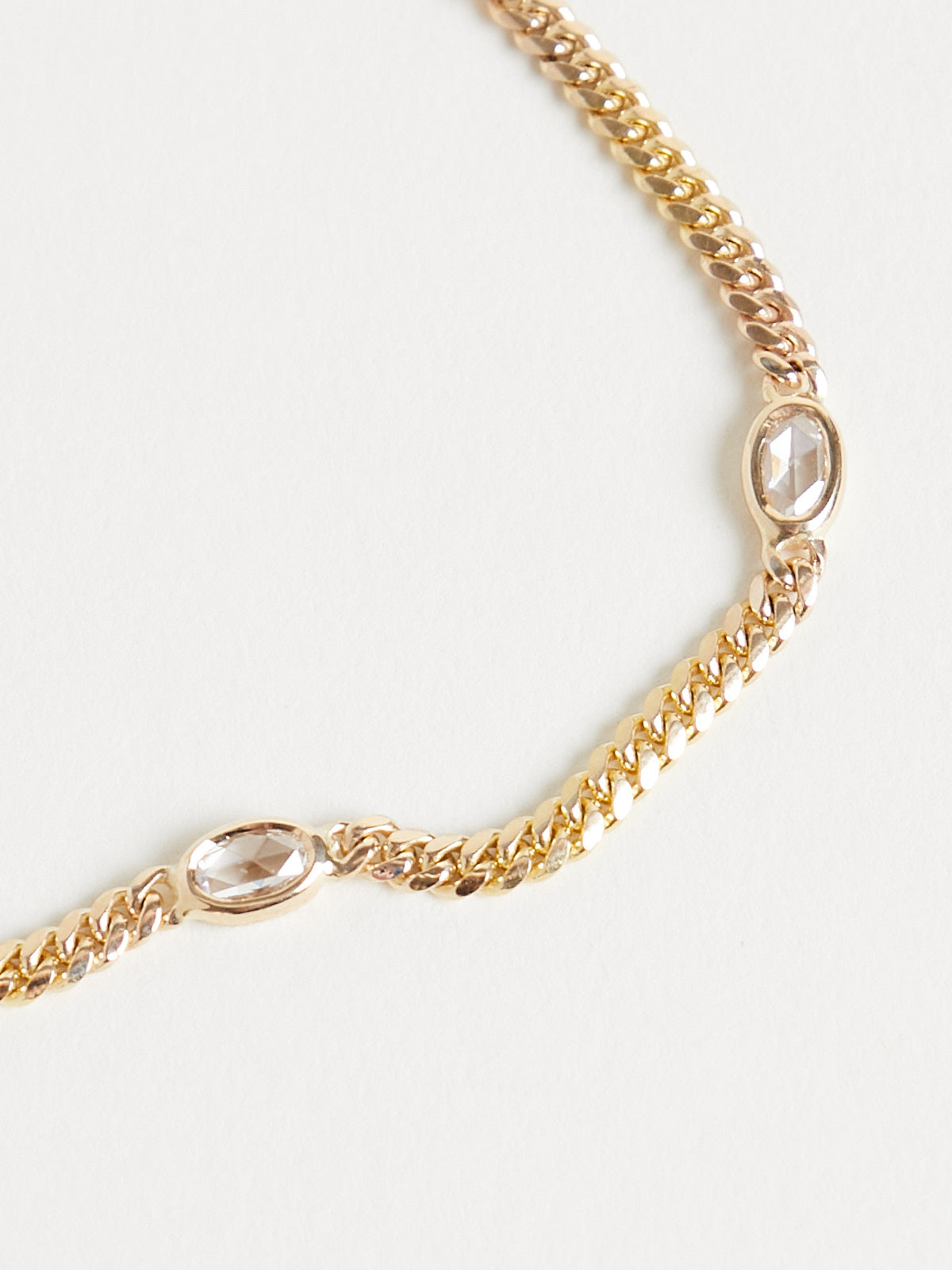 Chain bracelet in 14k yellow gold with bezel-set rose-cut brown diamonds (0.50ct). Features a lobster claw clasp.