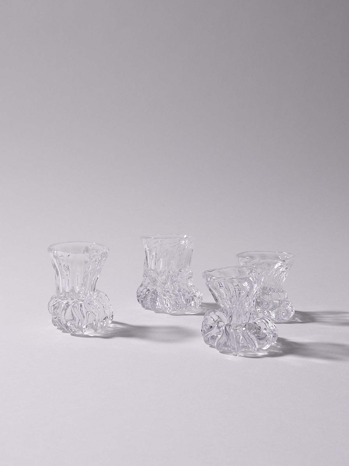 Alexander Kirkeby is a Danish glassblower and designer working within material and object design. In search of unexpected tactile experiences with a deep connection to tradition he creates functional and unique objects in glass. He strives to explore functionality, develop methods of decoration and seeks a more contorted aesthetic.