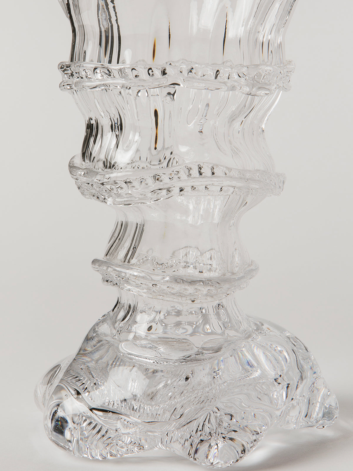 Mouth-blown ornamental tumbler clear crystal glass. Every piece is unique so appearance and size might vary.