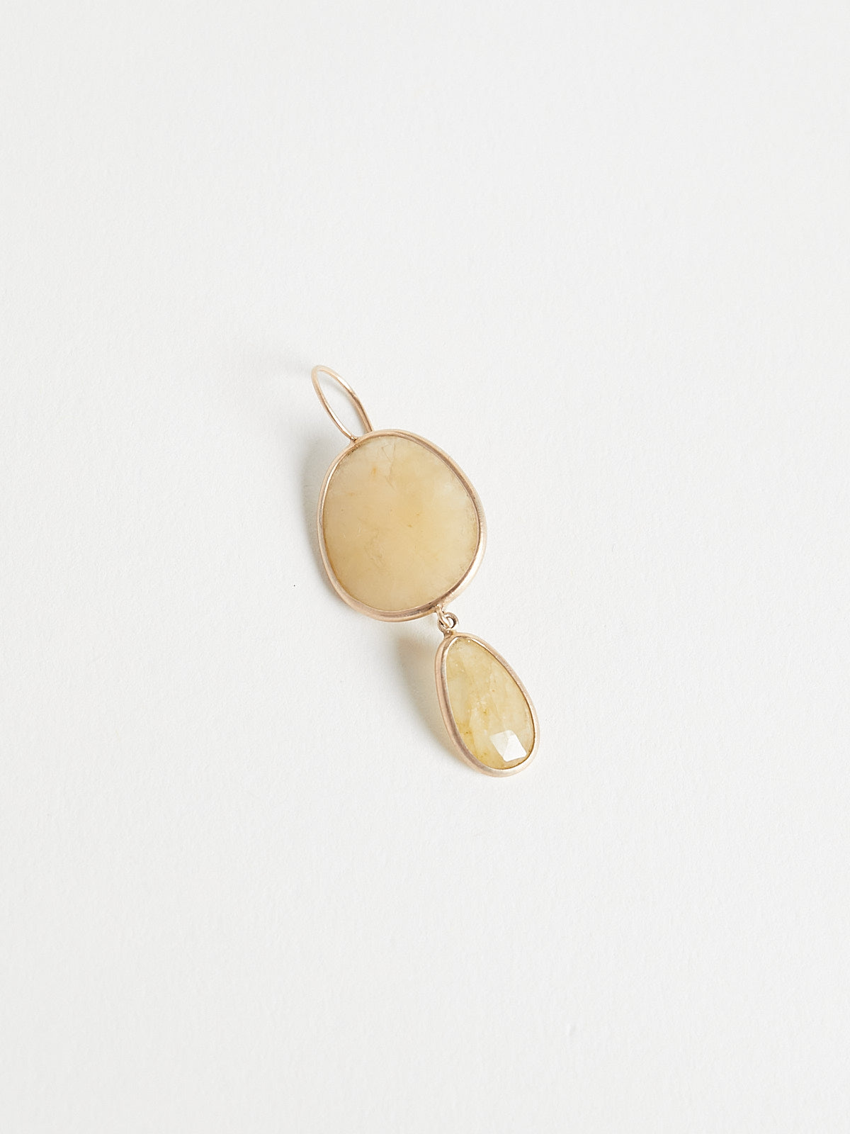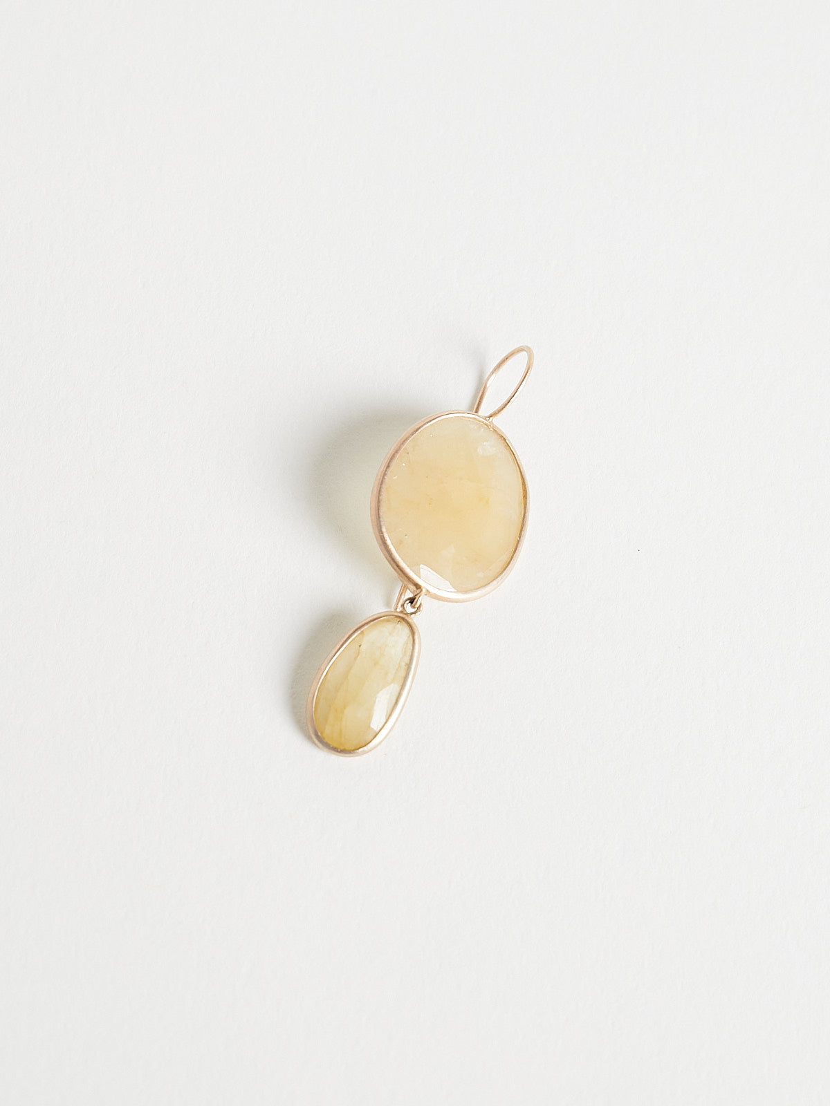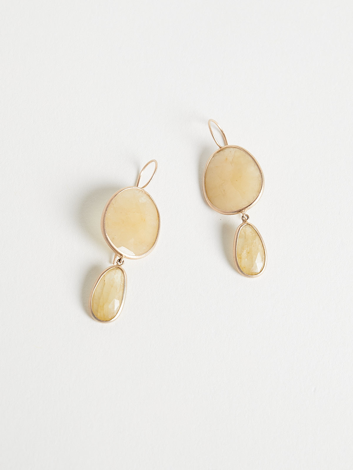 Earrings in 9k yellow gold with faceted 17.89ct yellow corundum double drops. Features an ear wire backing.