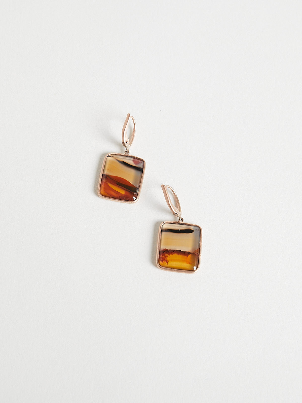 Earrings in 9k rose gold with 14.9ct cushion-cut agates. Features a leverback fastening.