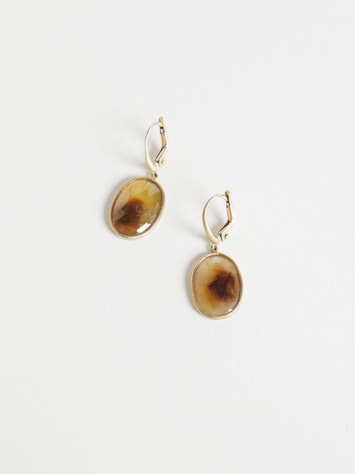 Earrings in 9k yellow gold with 11.43ct corundum drops. Features a leverback fastening.