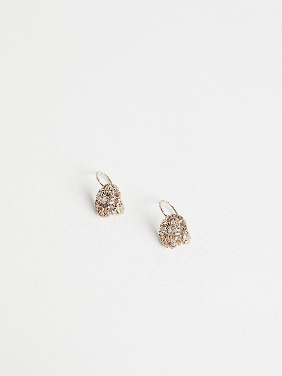 Ornamental earrings in 18/19k white gold encrusted with 0.10ct brilliant-cut white diamonds. Features a leverback fastening.