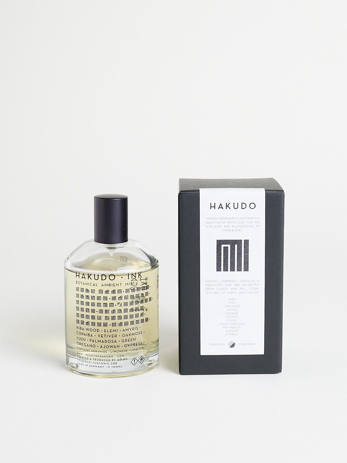 "HAKUDO INK offers you a quite moment to unwind in everyday life and to uncover your authentic soul. It keeps the space around you purified through 11 botanical essences that work in synergy: Hiba wood, Oakmoss, Amyris, Copaiba, Vetiver, Elemi, Yuzu, Green Oregano, Palmarosa, Ajowan, Cypress"