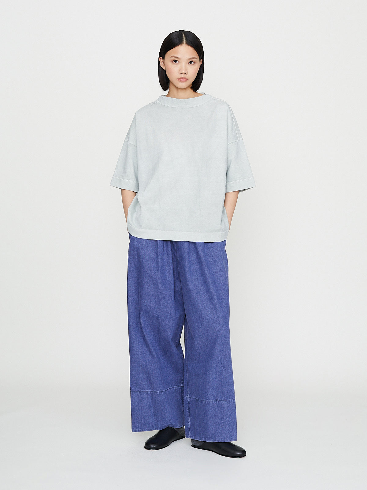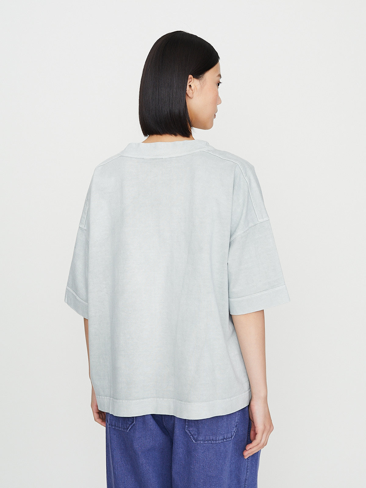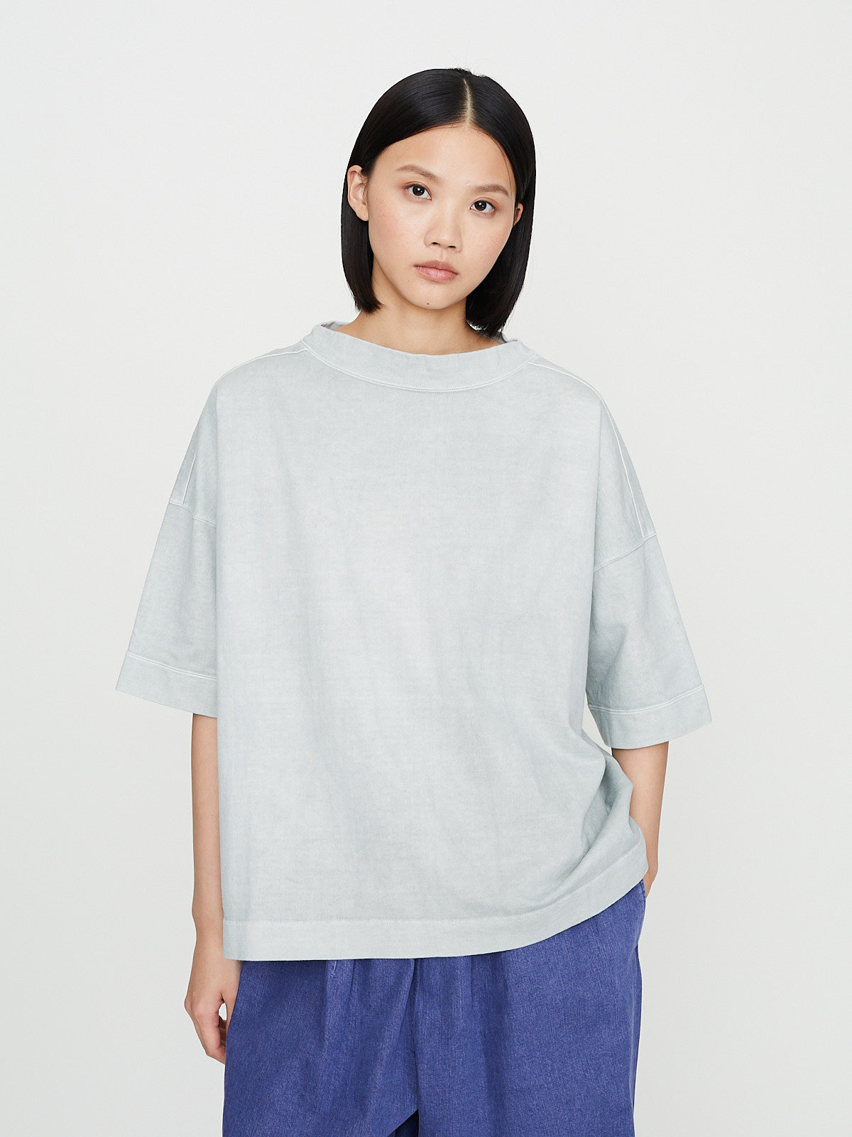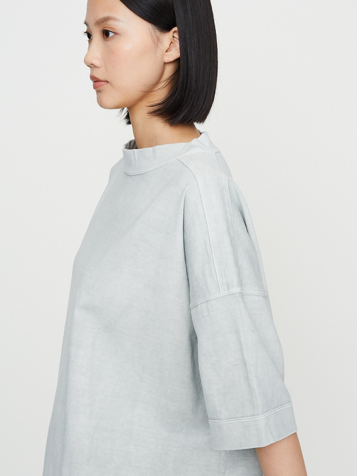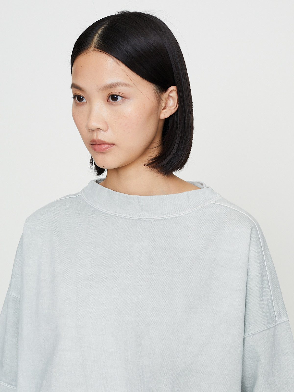 Oversized unisex t-shirt in light grey heavy cotton jersey. Stand collar and elbow-length sleeves with a dropped shoulder. Boxy fit.