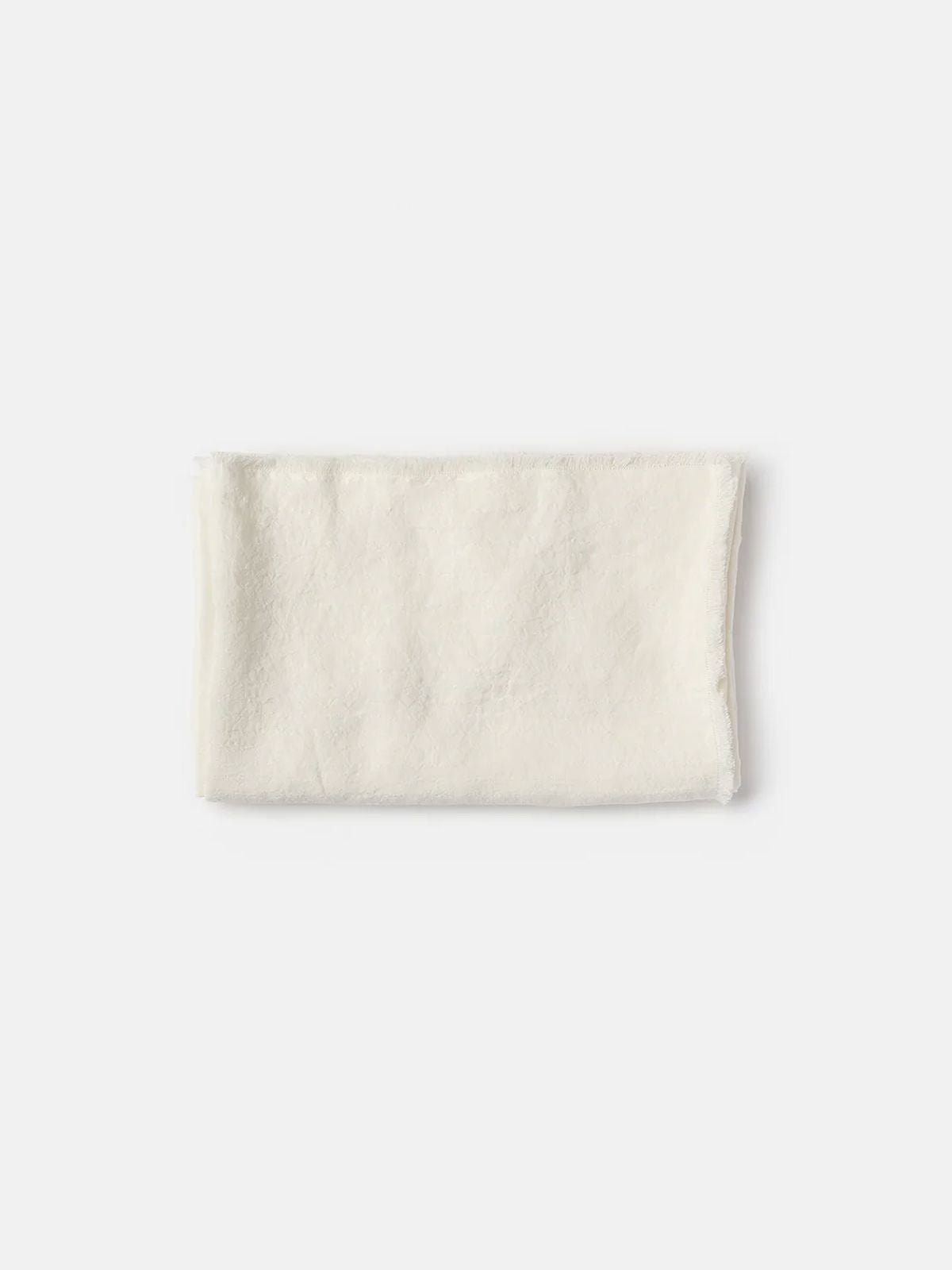 Tablecloth in white yarn-dyed canvas linen with a windowpane pattern. Features a fringed edge.