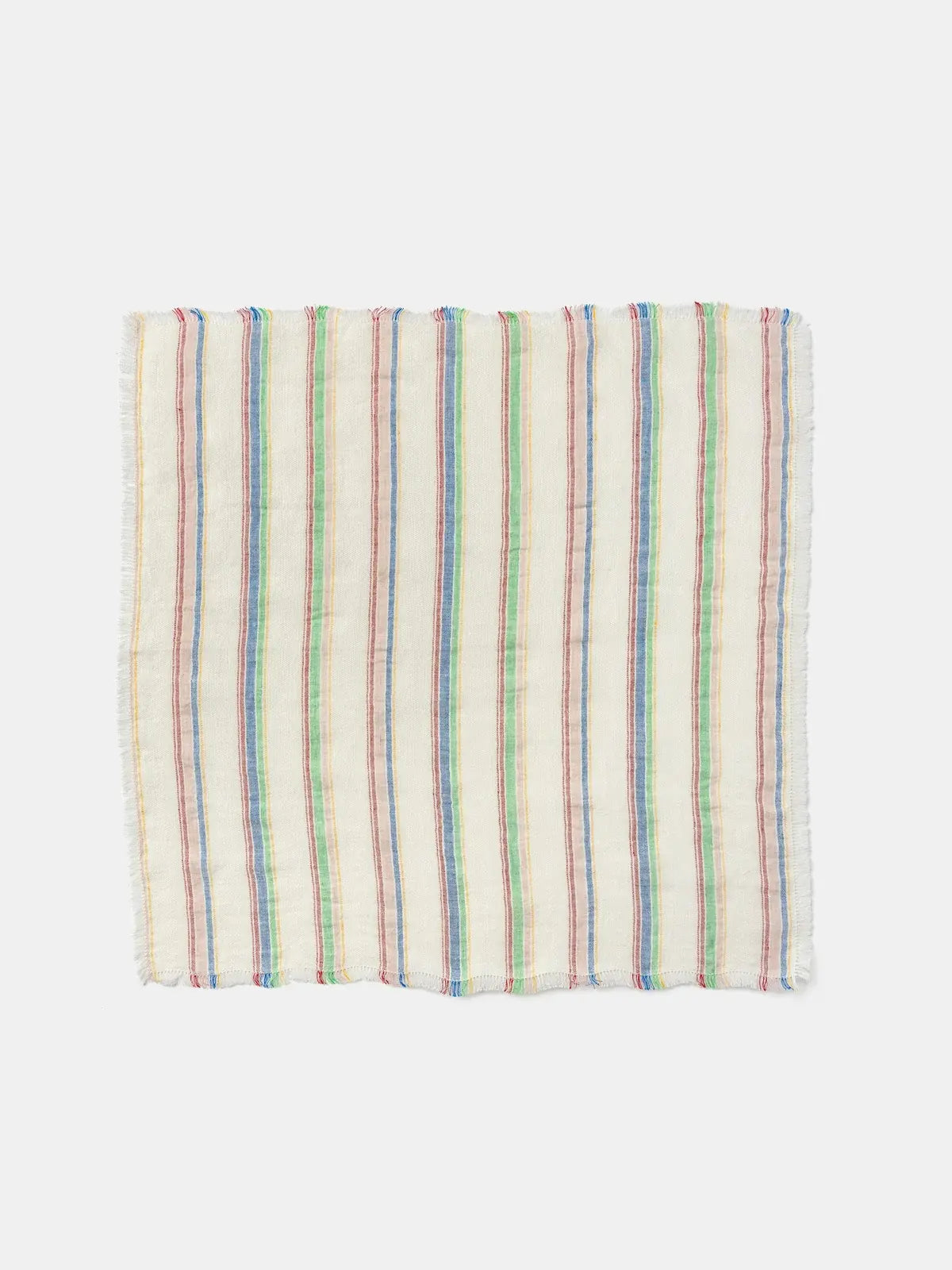 Napkin in yarn-dyed linen woven with a refined jacquard technique. Features an intricate shift in the weave accented by six yarn-dyed colors, forming irregular stripes that flow across the fabric.