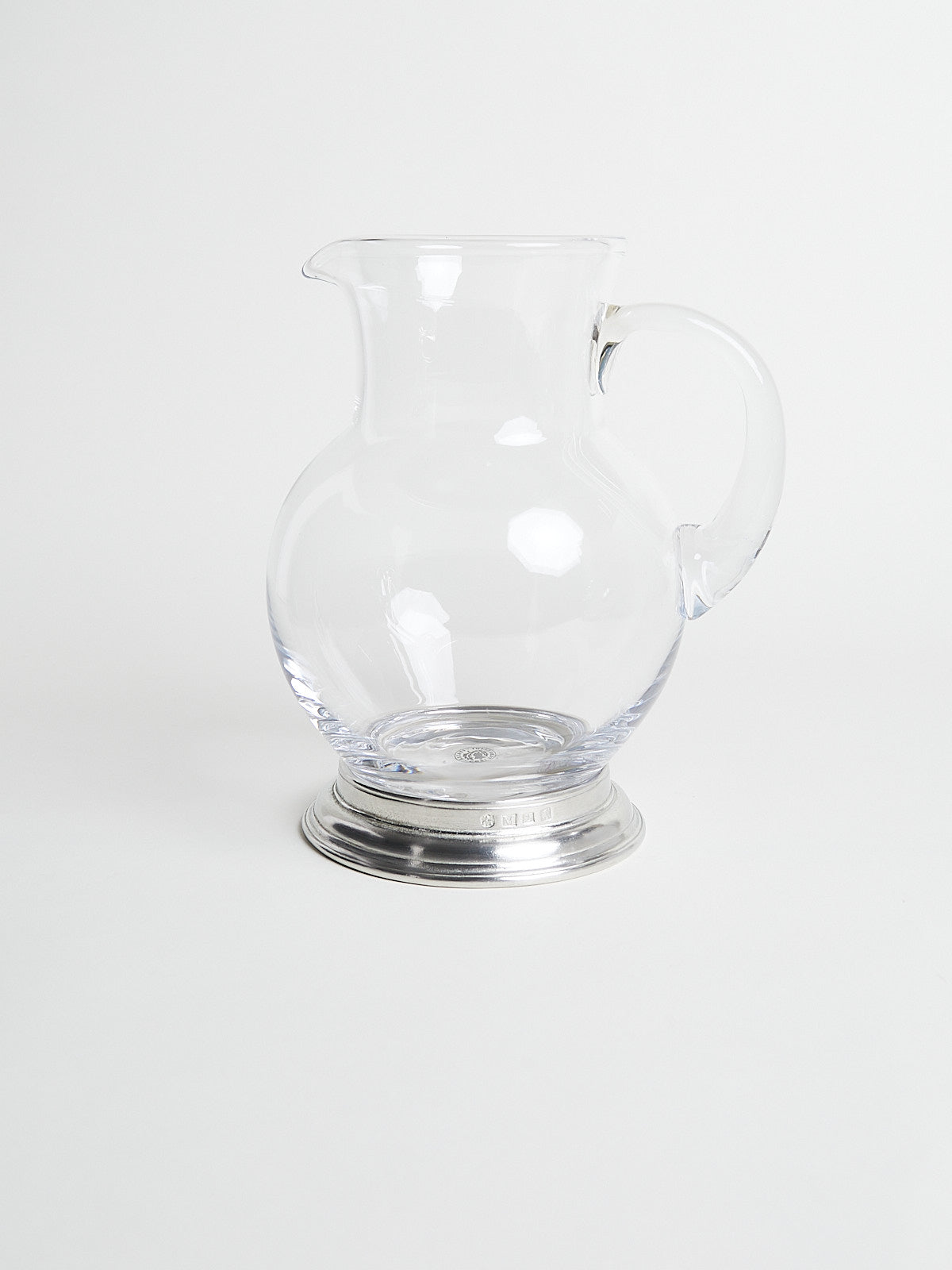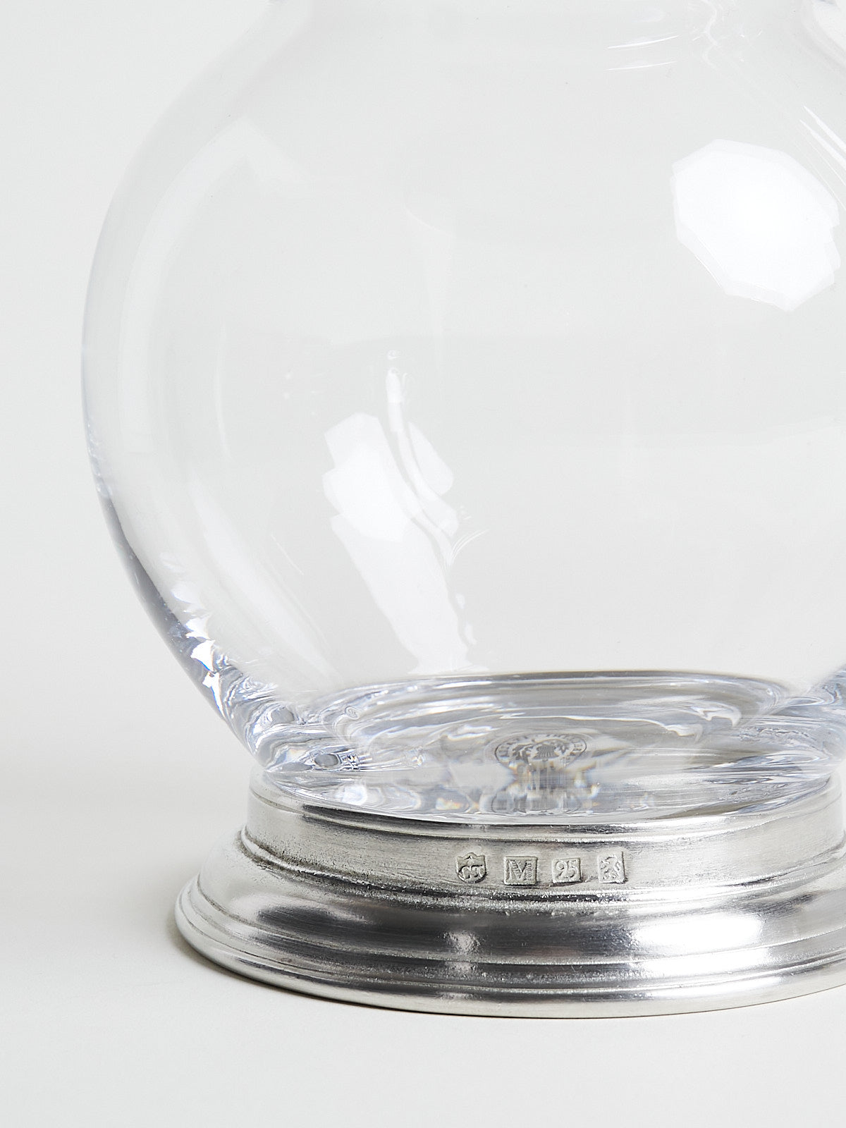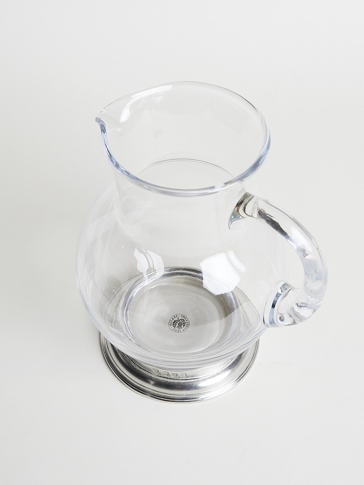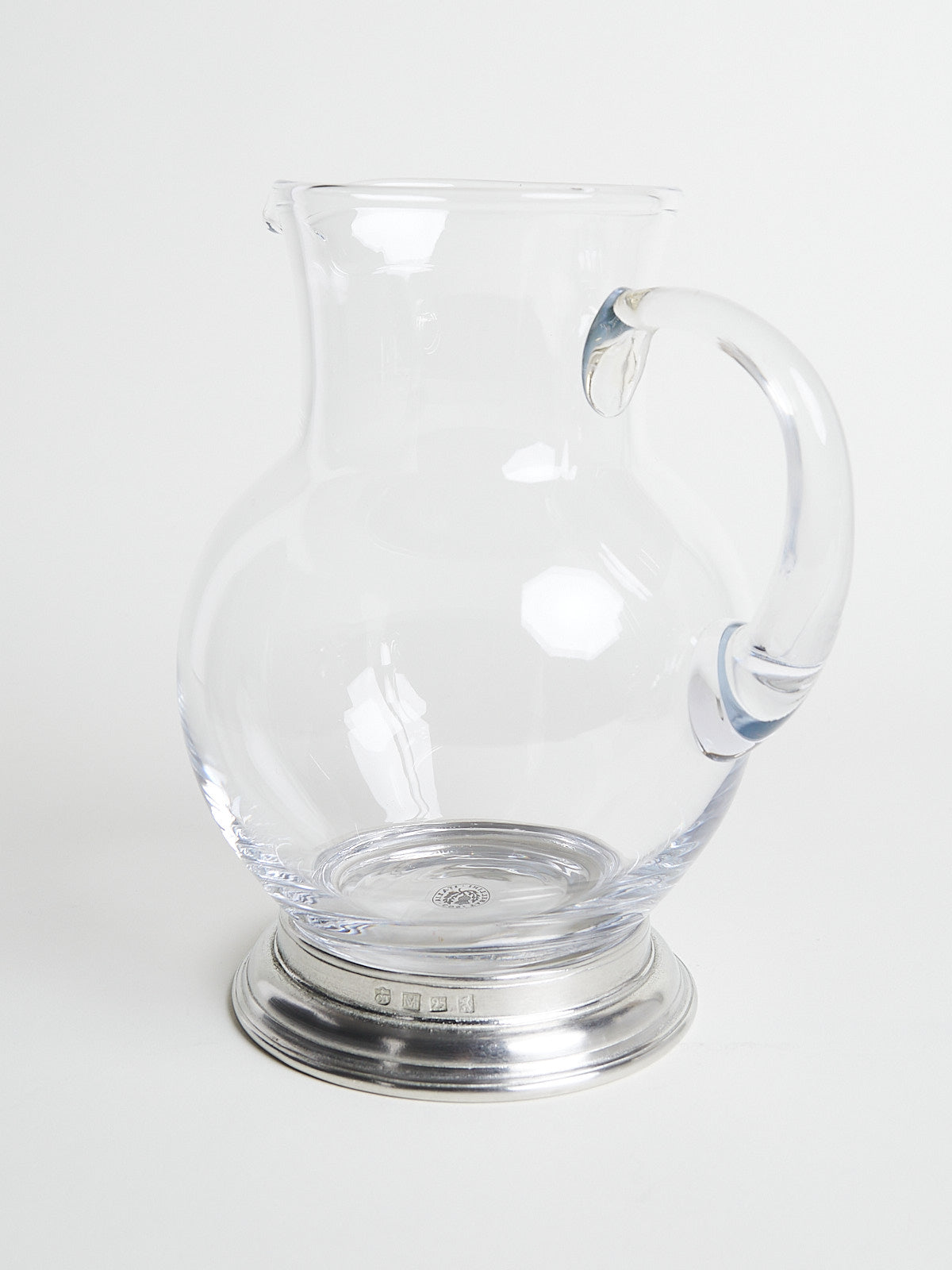 Handcrafted large pitcher with handle made from lead-free crystal glass and balanced by a solid pewter base.
