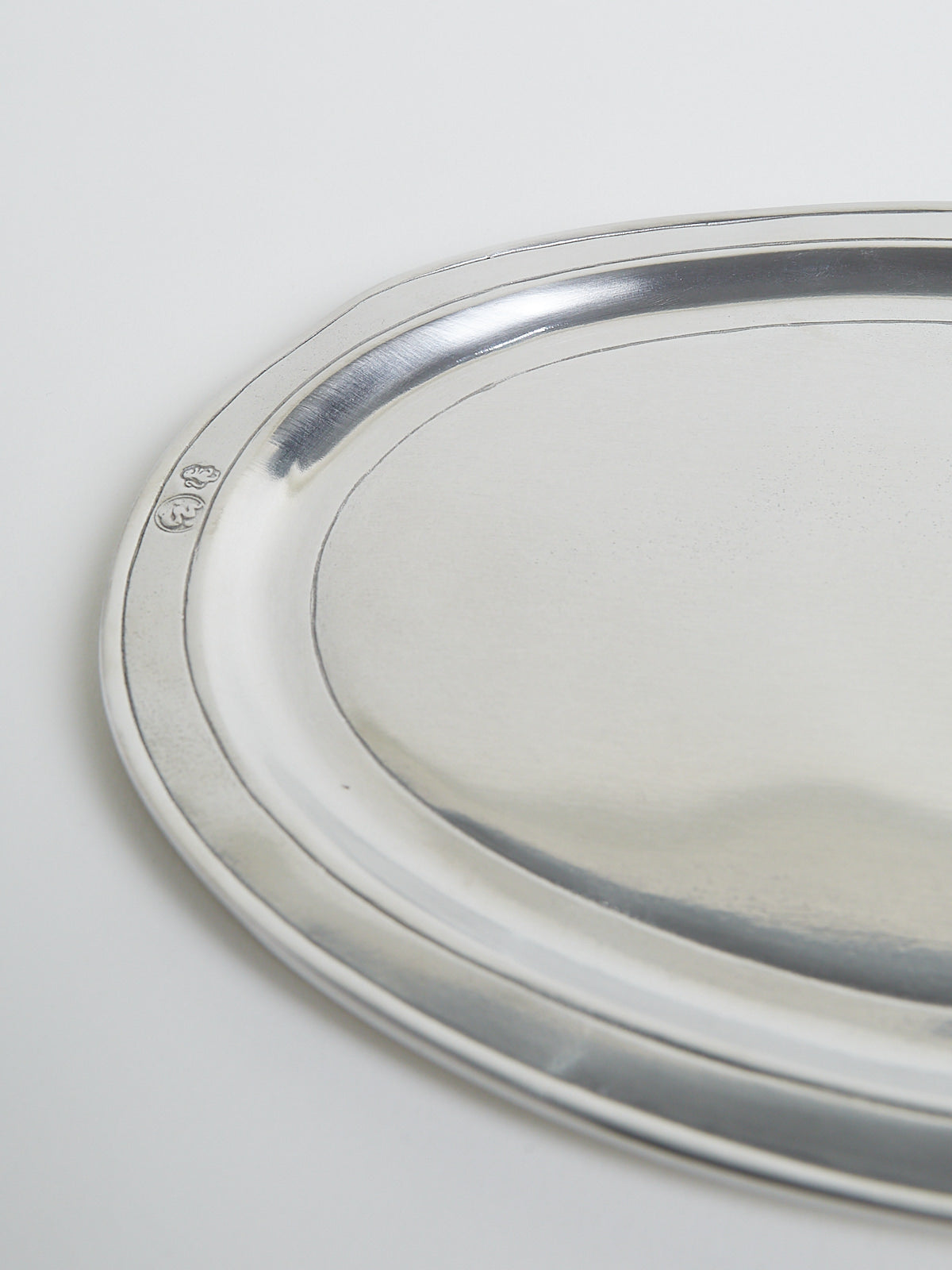 Handcrafted oval tray made from lead-free Italian pewter.