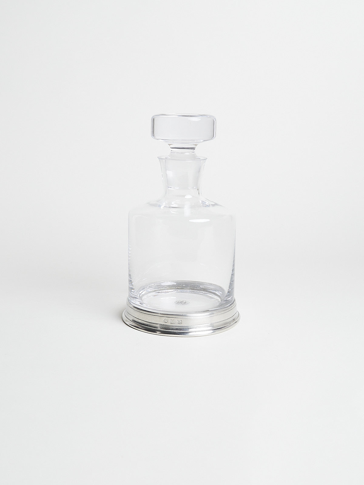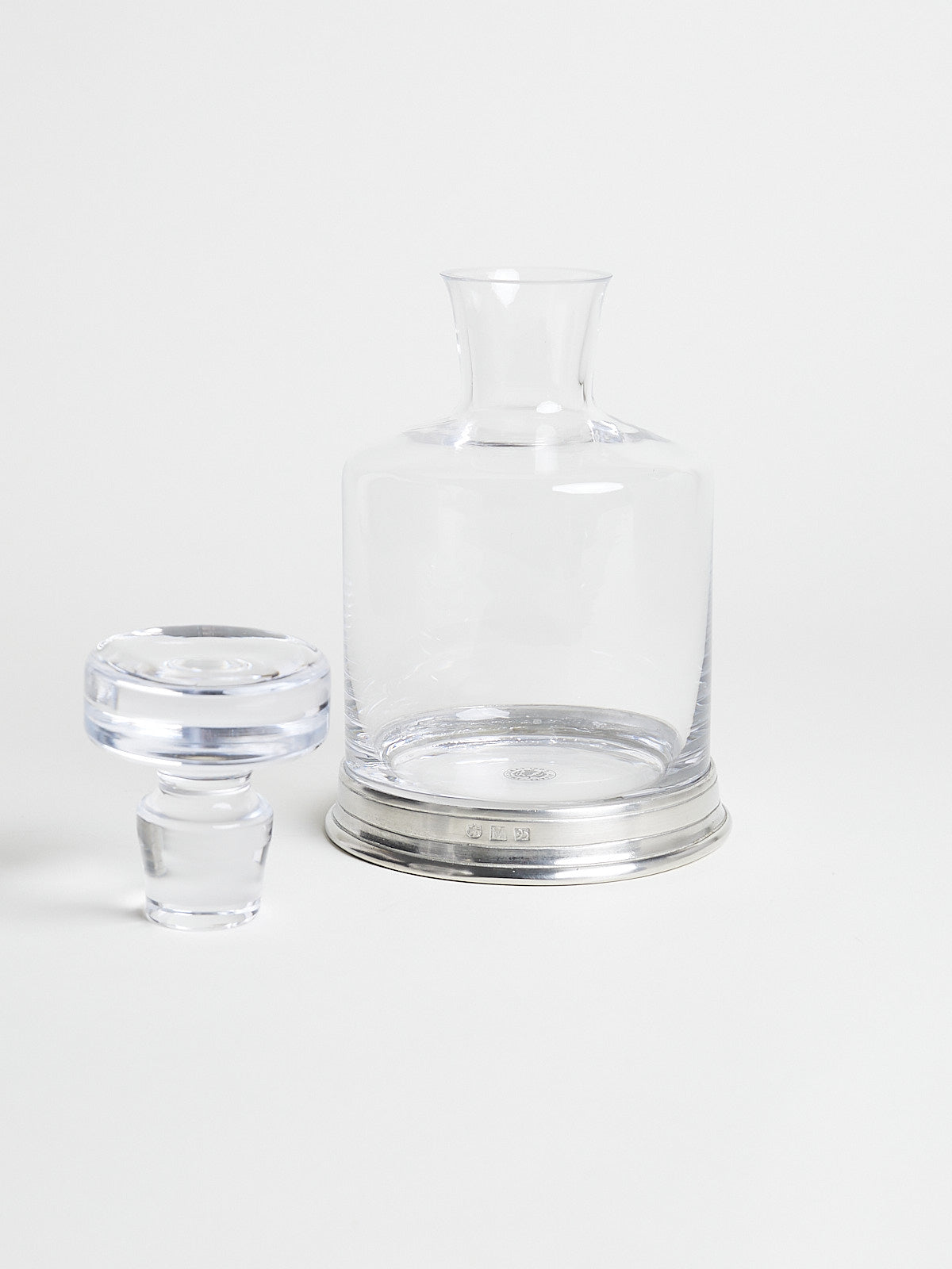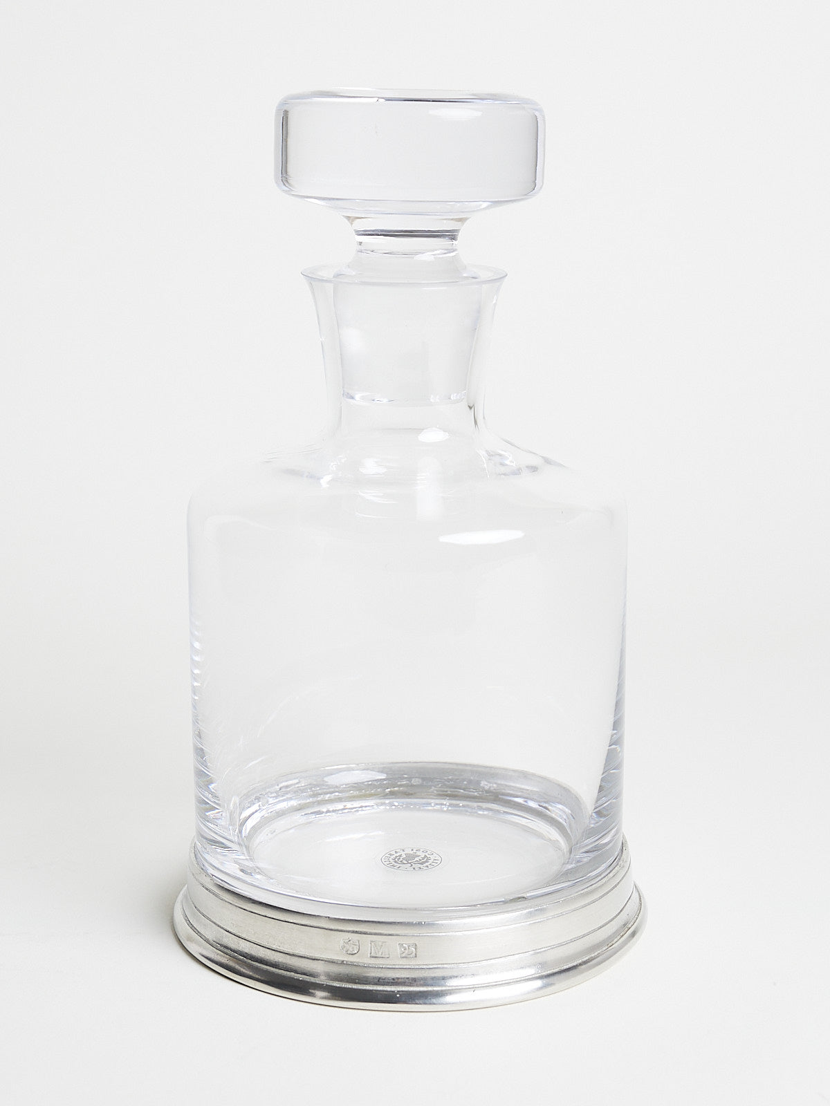 Classic decanter with stopper made from crystal glass with a handcrafted Italian lead-free pewter base.
