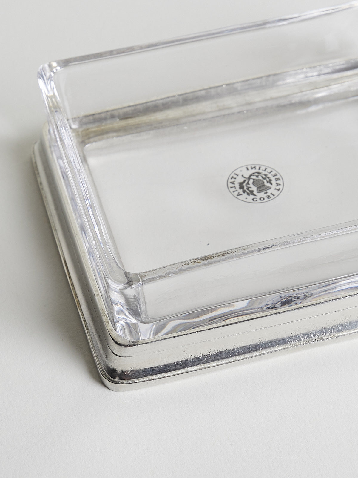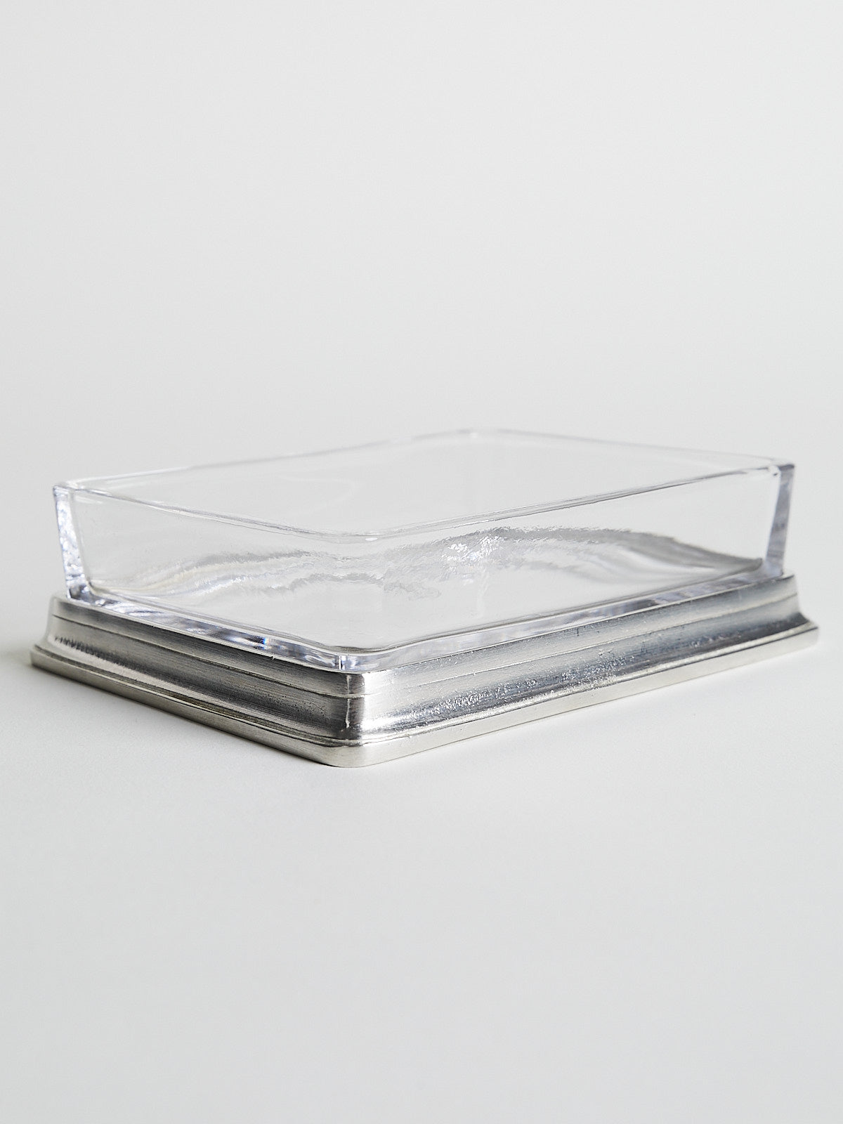 Soap/butter dish made from glass with a pewter base.