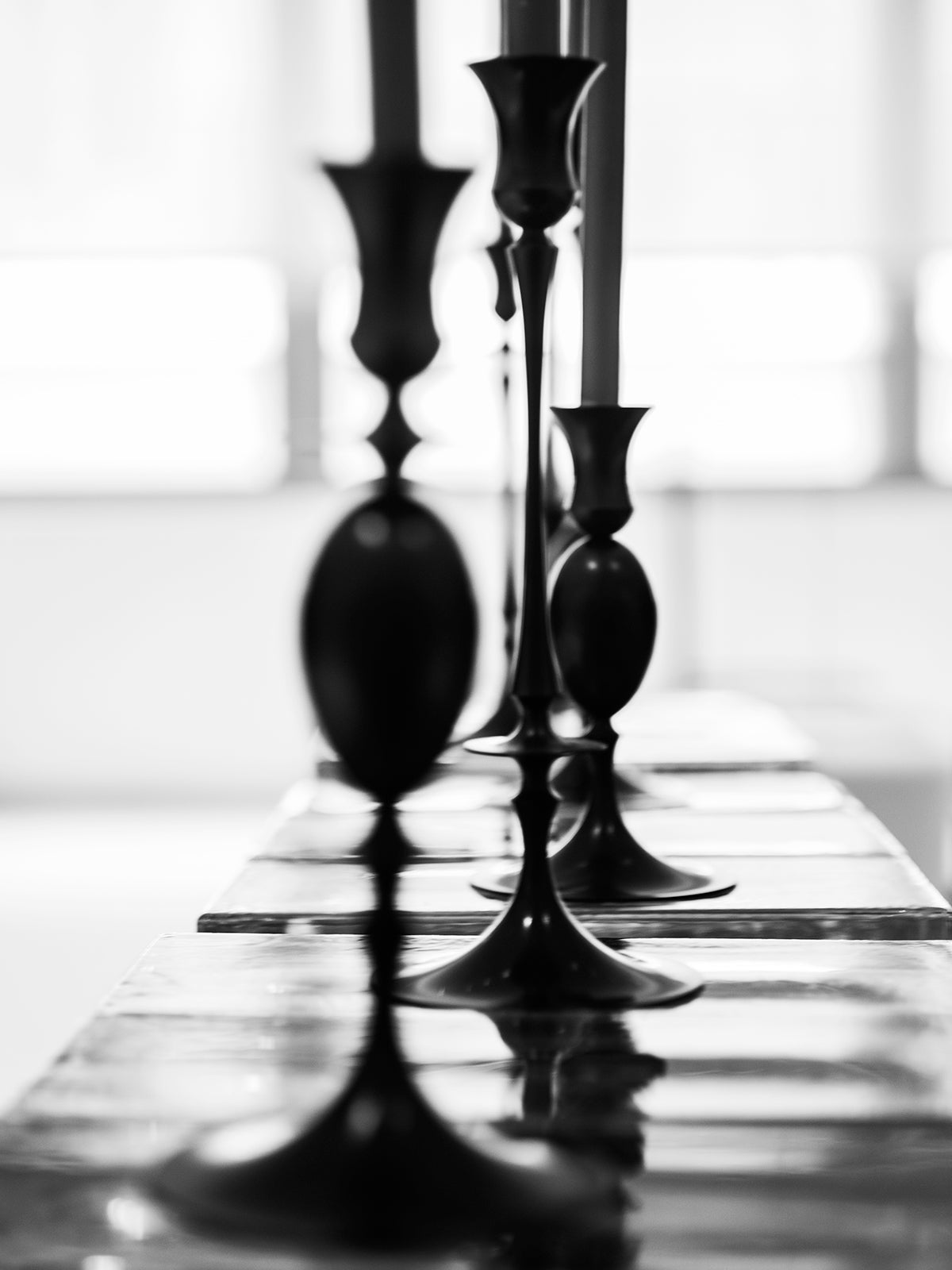 Candlestick in oxidised bronze inspired by the precision of 19th century lathe work. This piece was inspired by the attenuated rod and trumpet form. Designed by Ted Muehling.