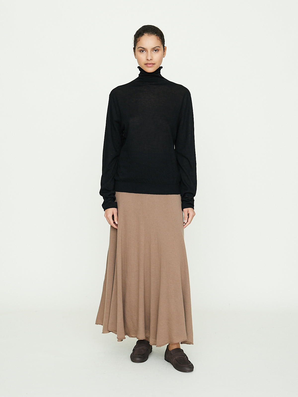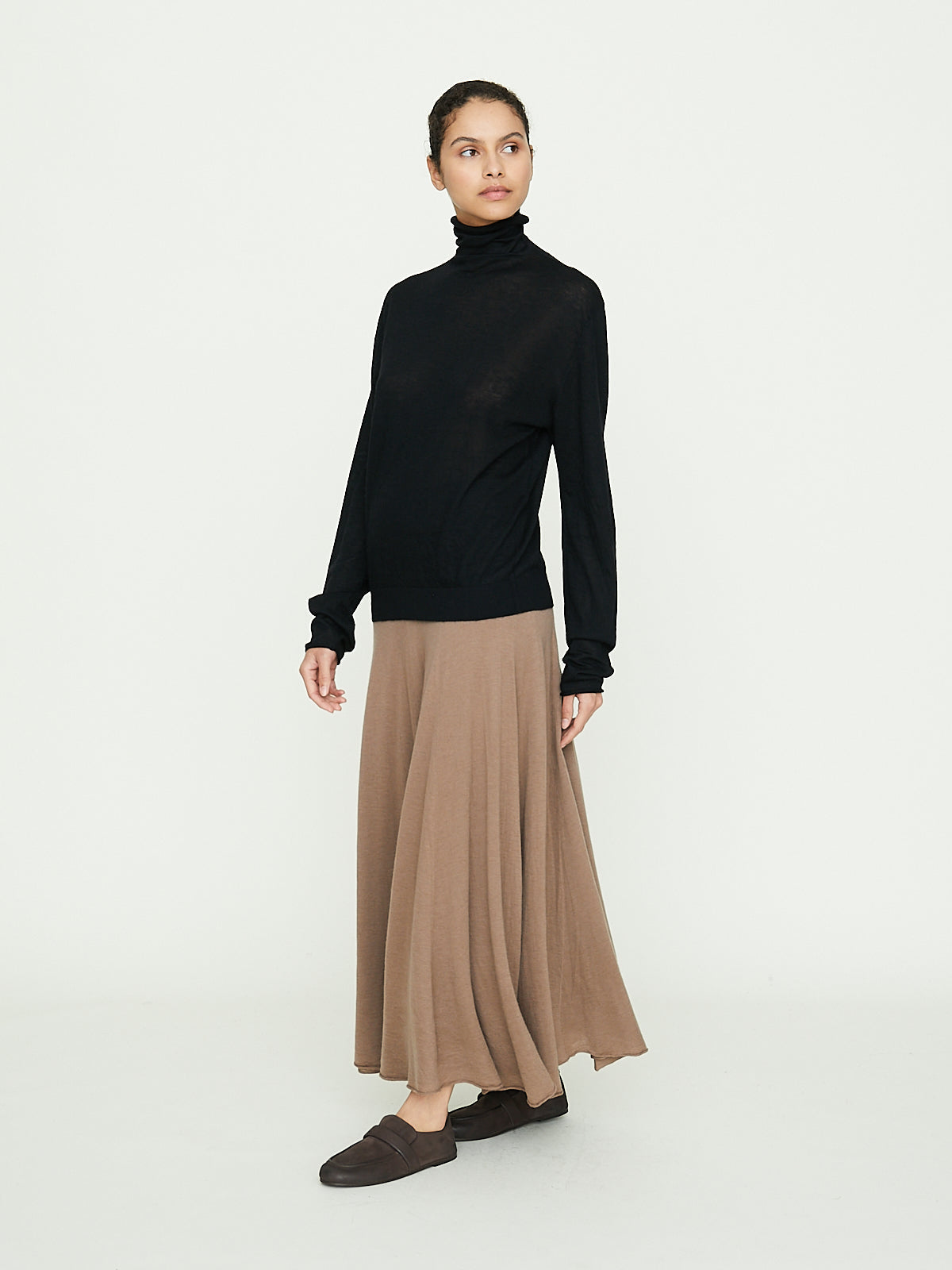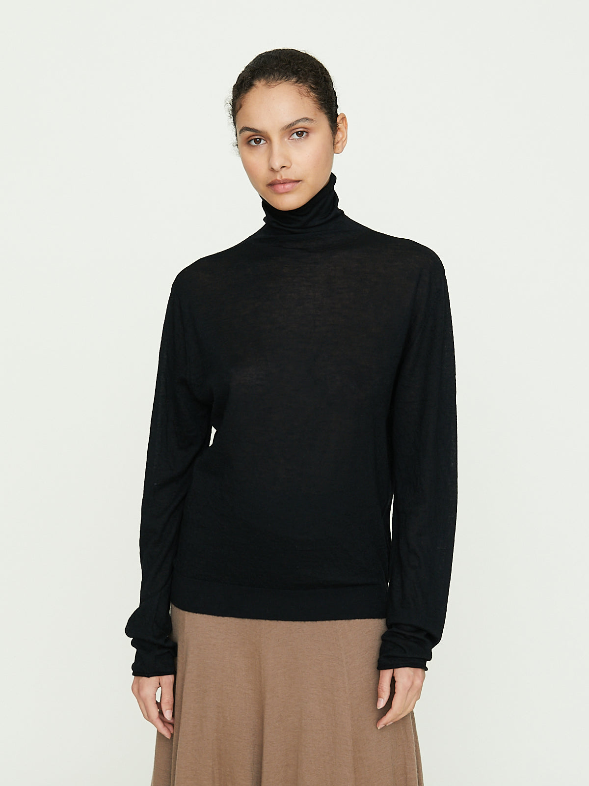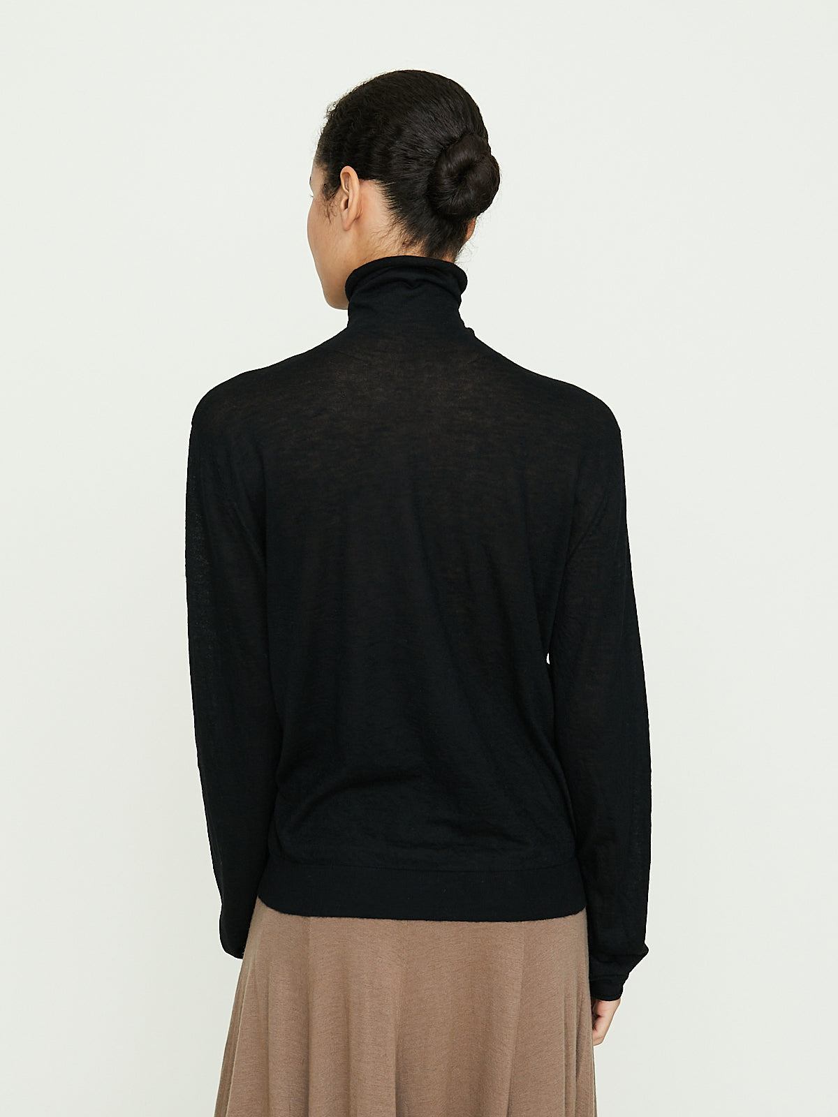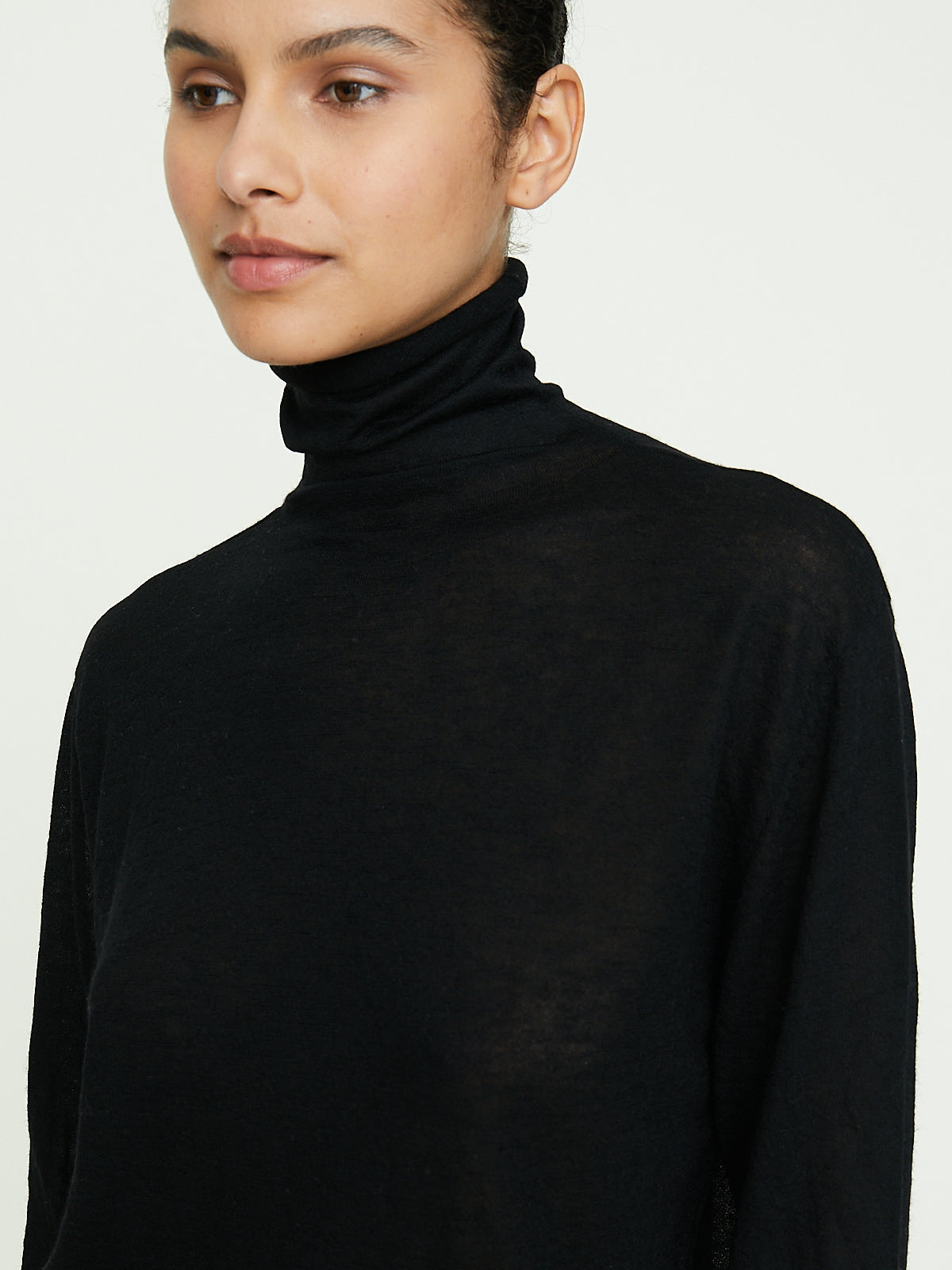 Turtleneck in a lightweight black super-fine cashmere. Extra long sleeves with a dropped shoulder. Fine-rib detail around the neck and bottom hem. Relaxed fit.