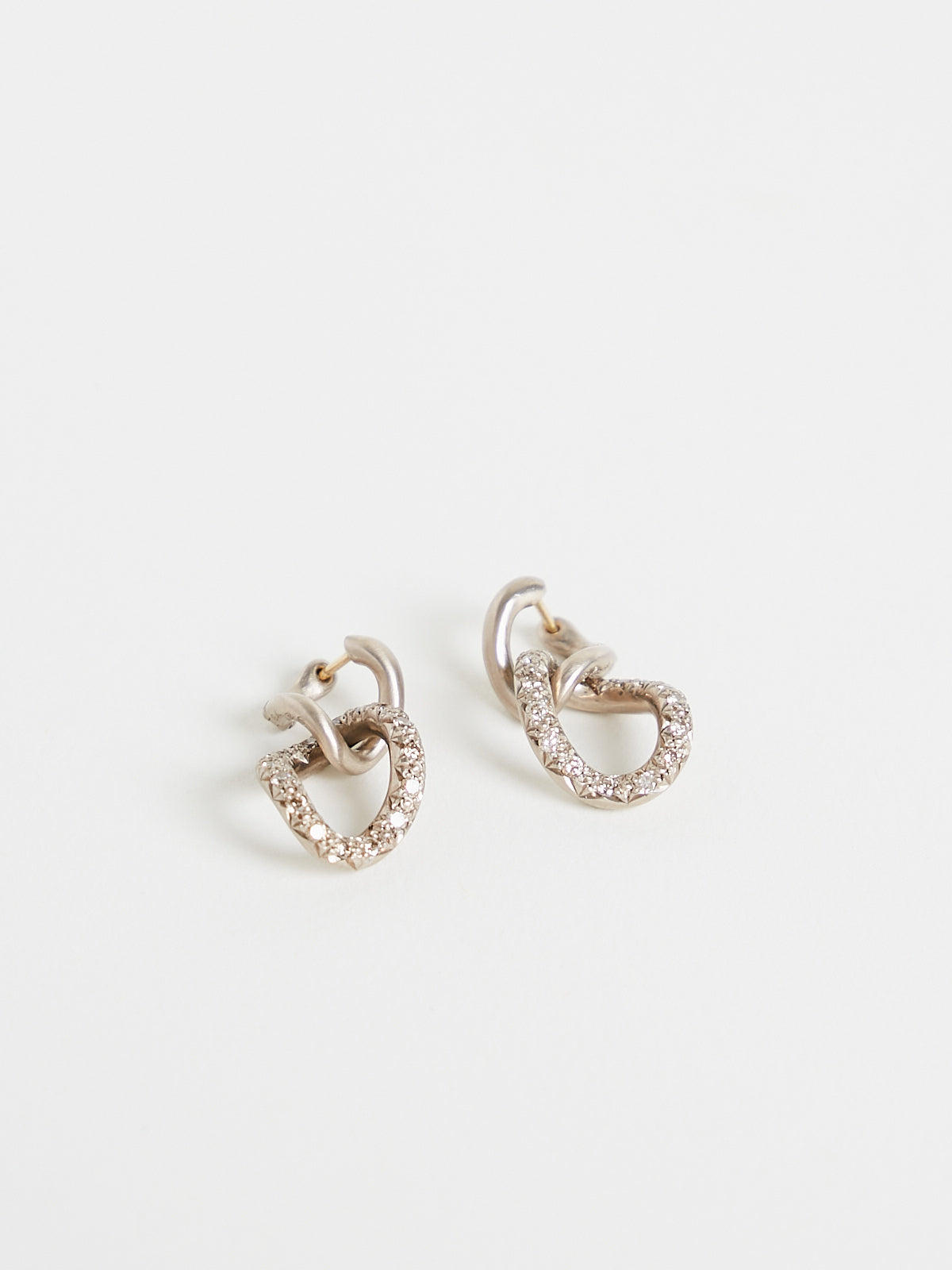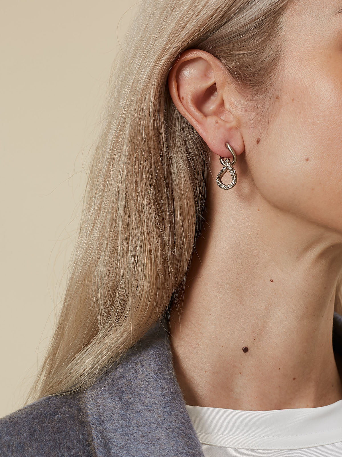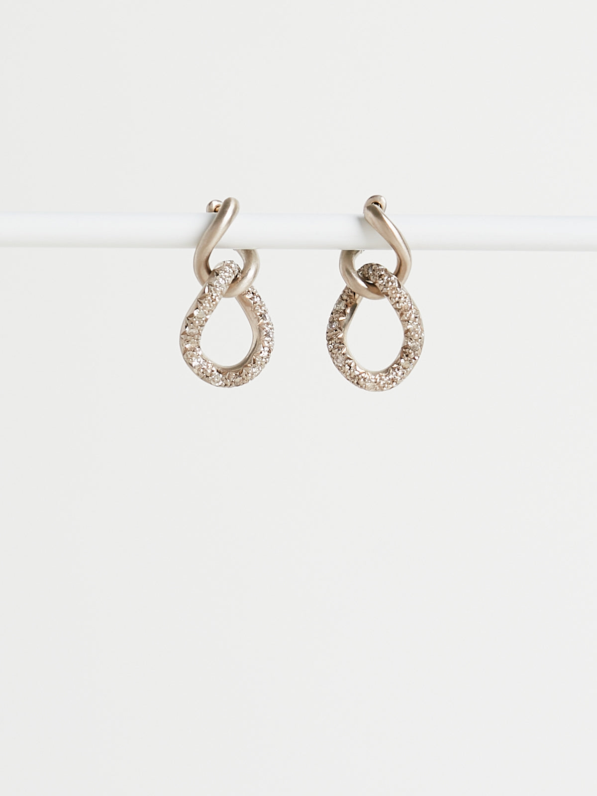 Chain earrings in 18k white gold with 0.64ct brown pavé diamonds. Features an ear post backing with a clip fastening.