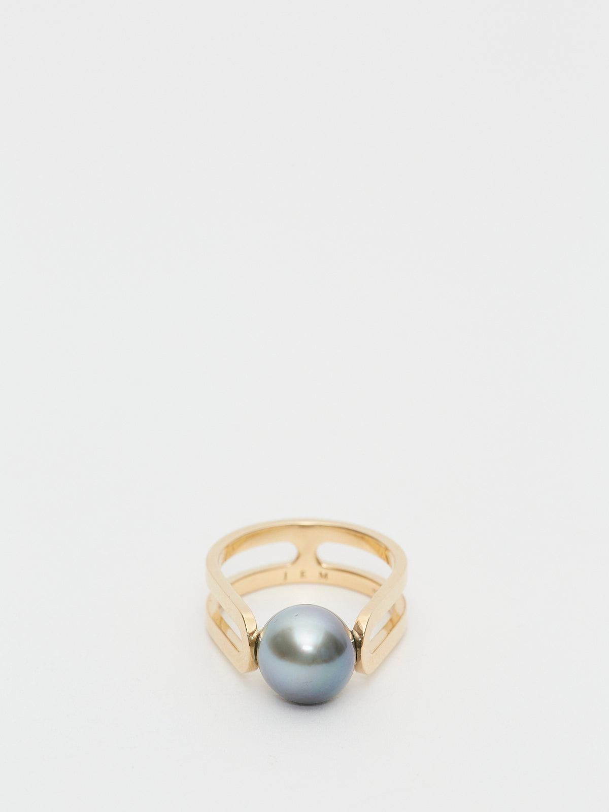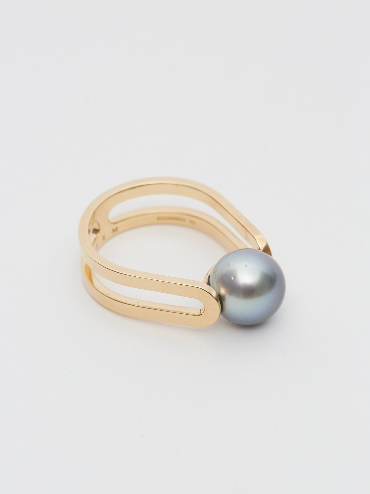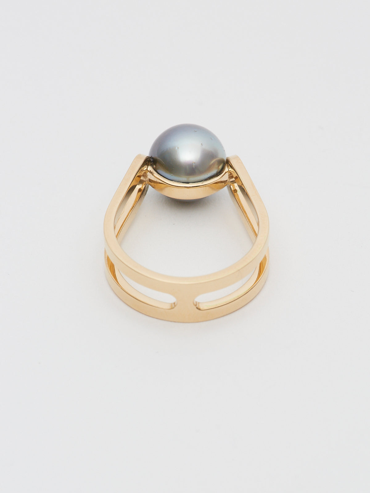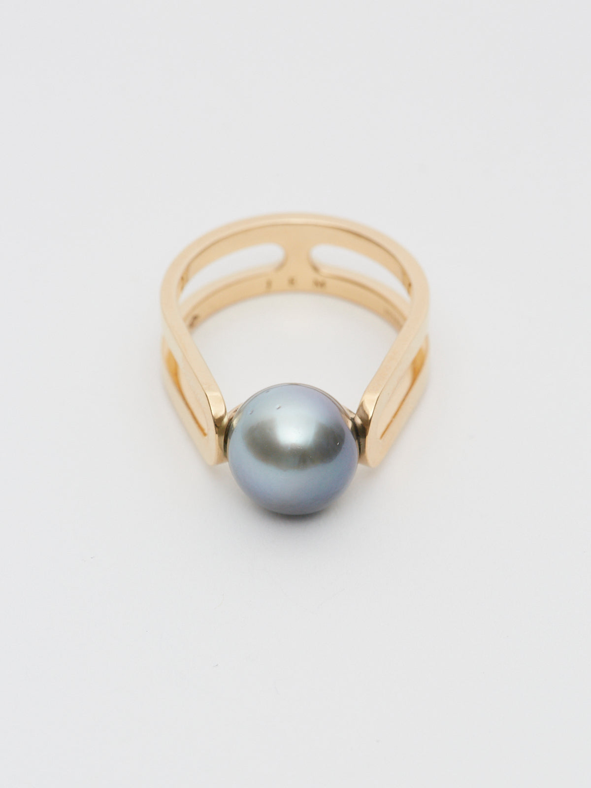 Solitaire Étreintes ring in Fairmined 18k yellow gold with a a 9mm blue pearl from Fiji.
