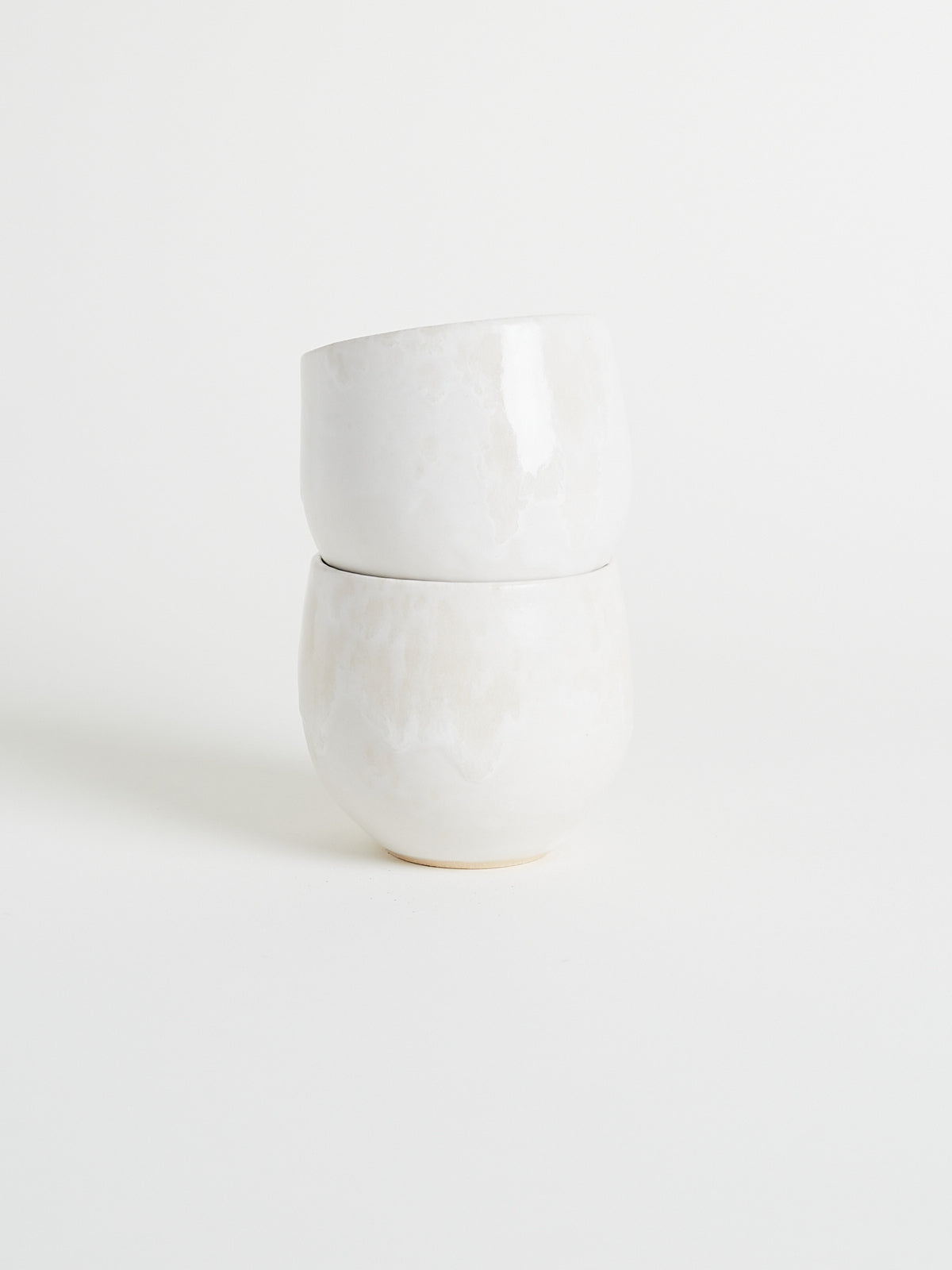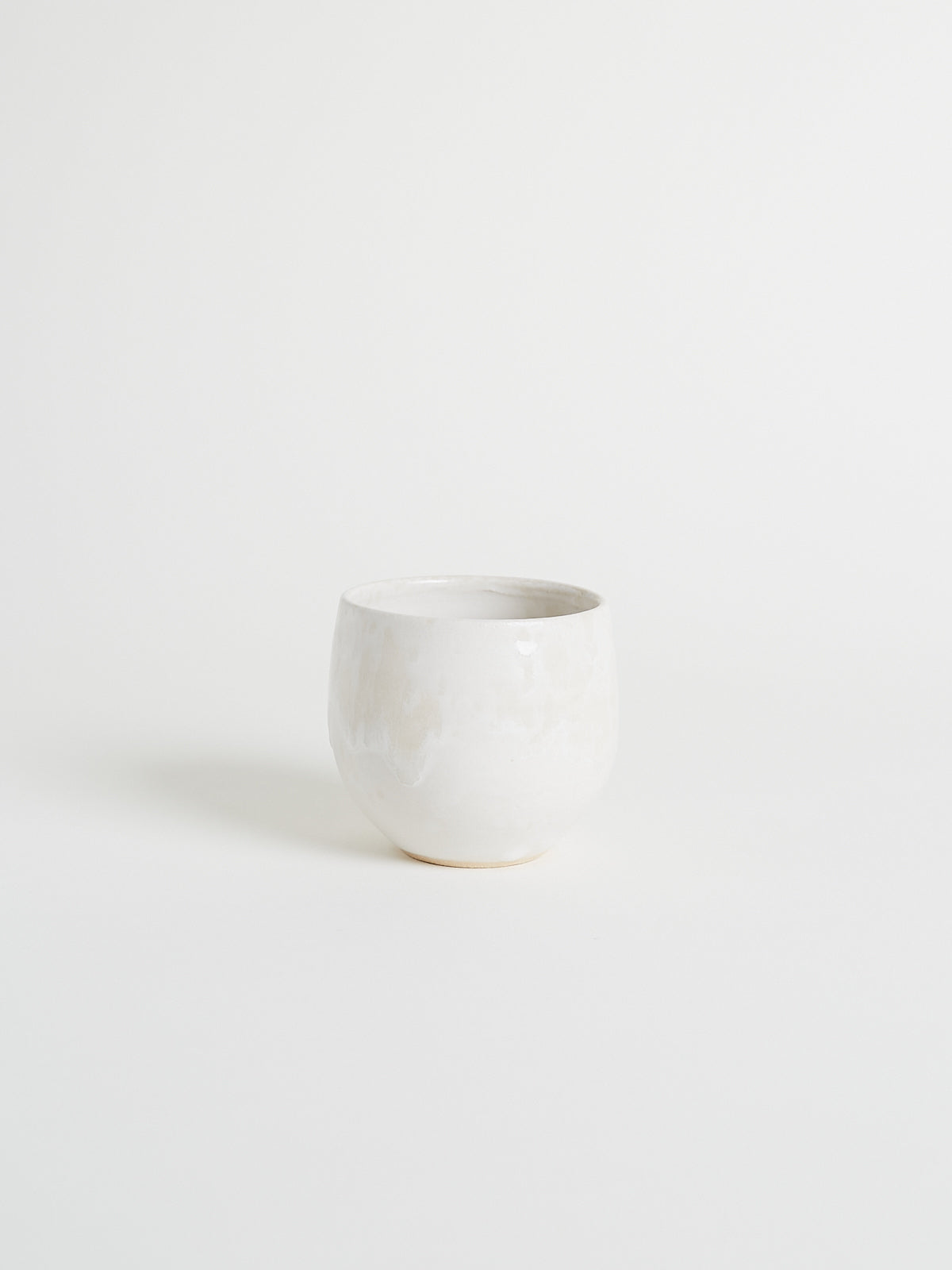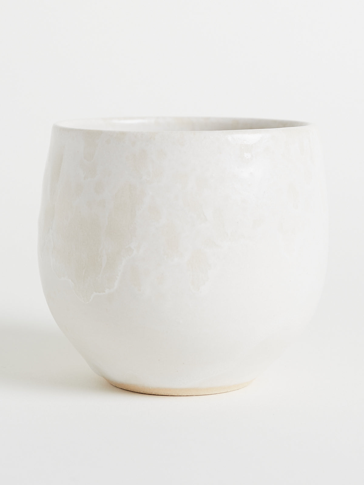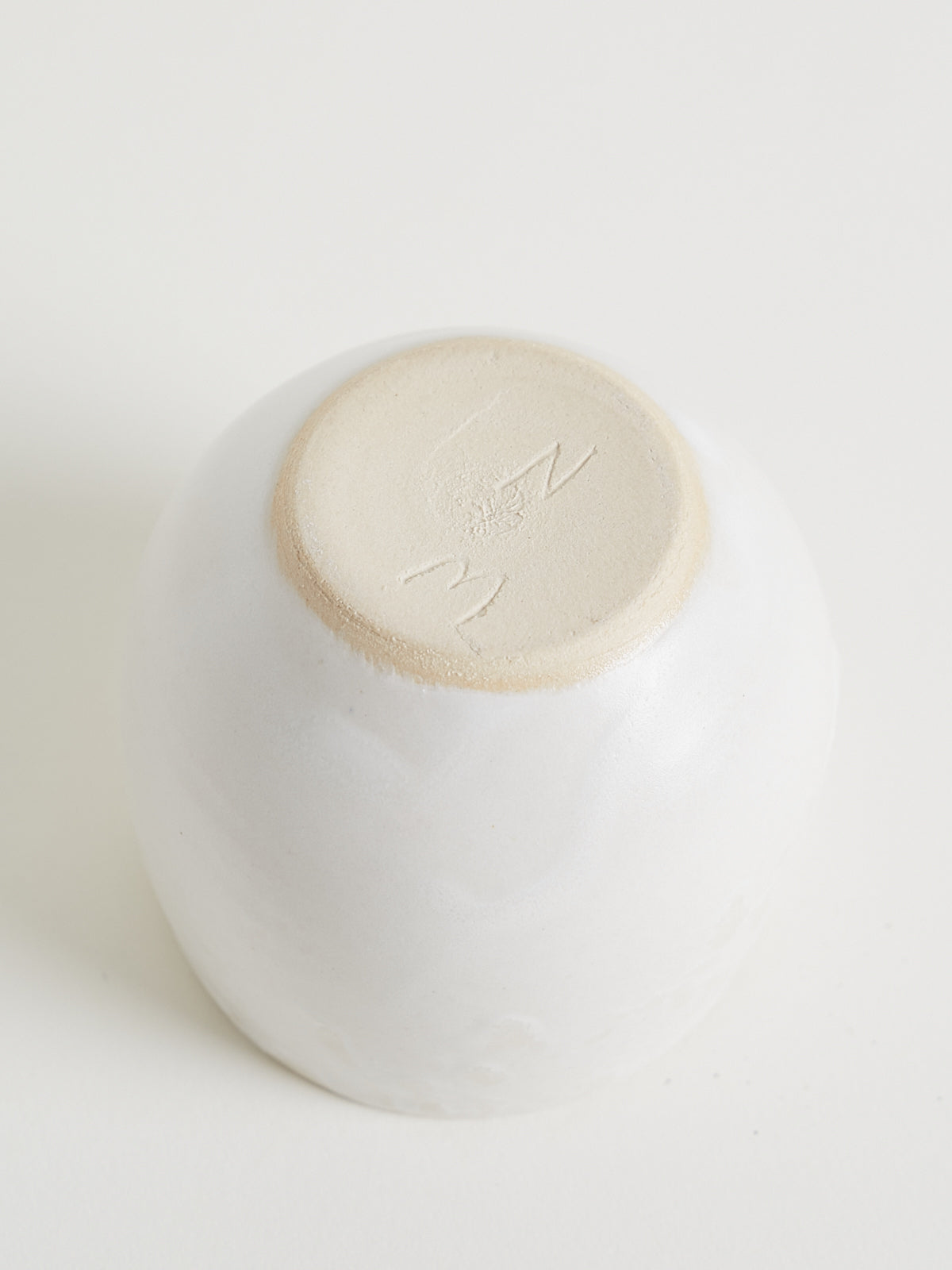Hand-thrown and hand-glazed cup in ivory shades. Each piece is created using ancient wheel-turning and glazing methods.