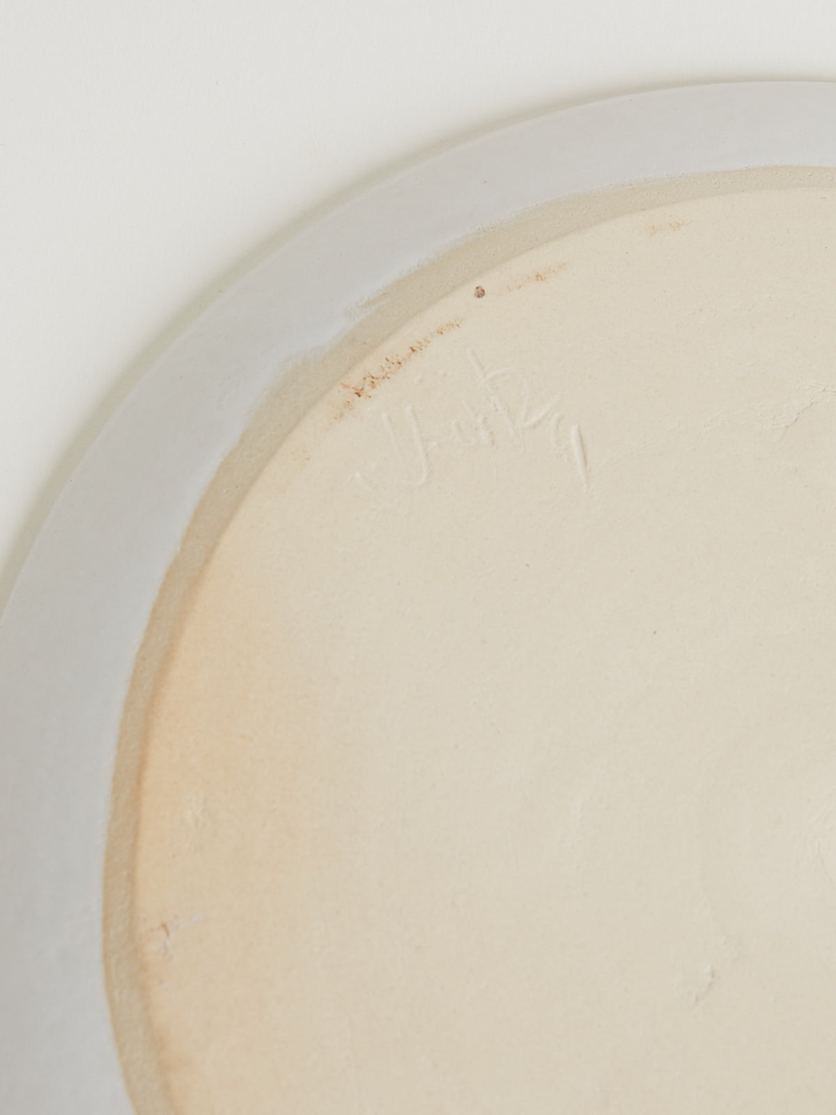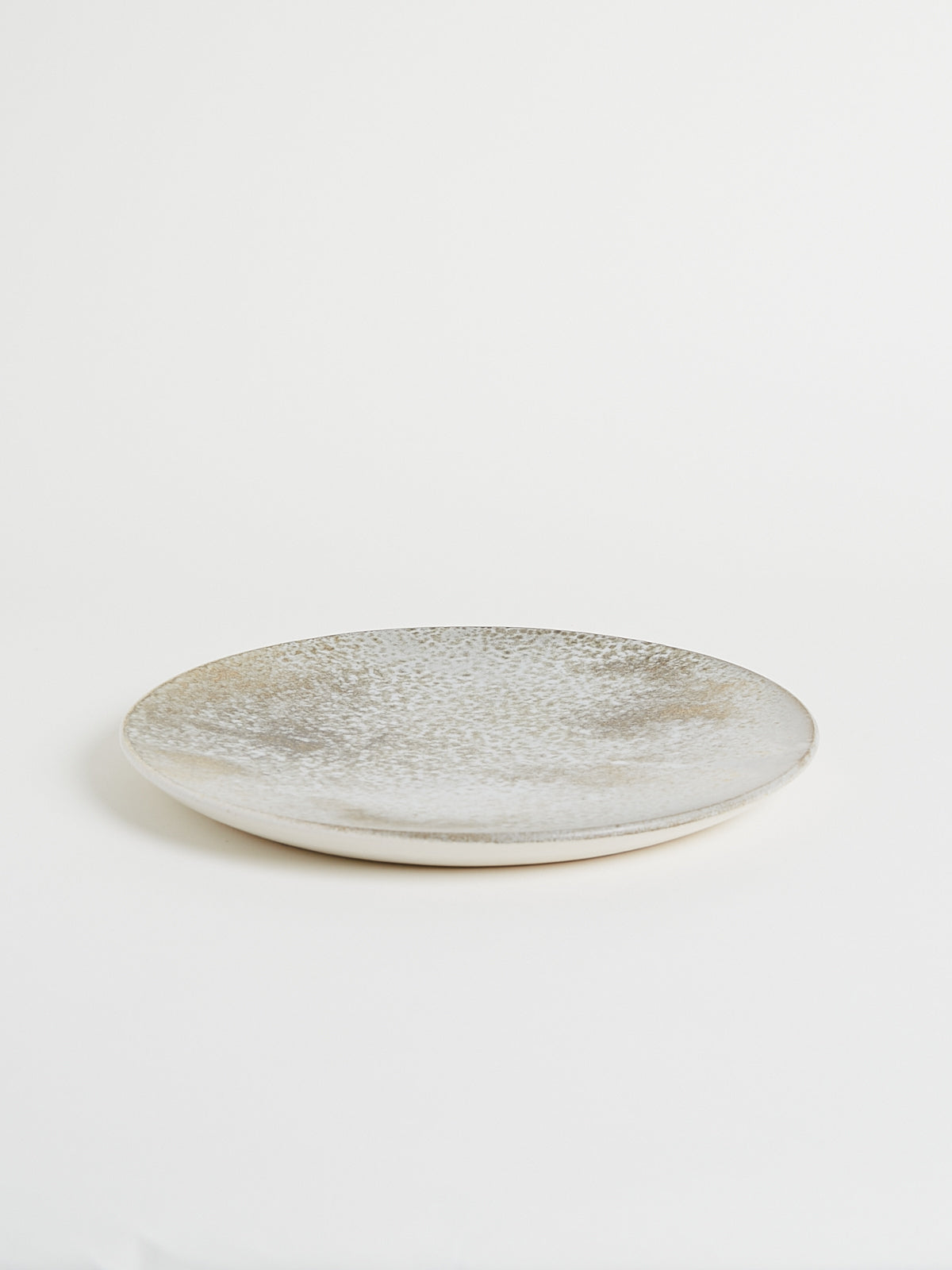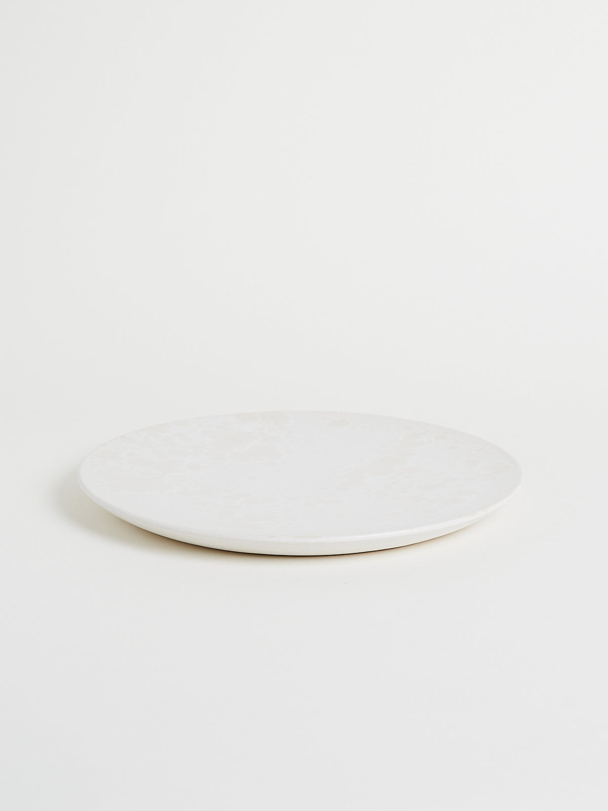 Hand-thrown, hand-glazed large ceramic plate in ivory shades. Each piece is created using ancient wheel-turning and glazing methods.