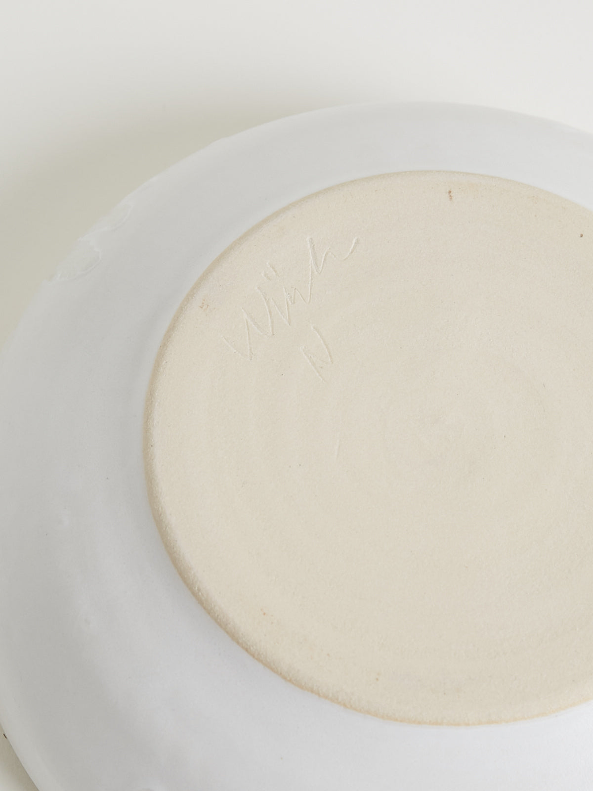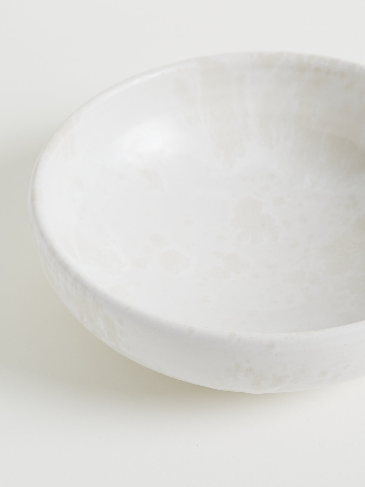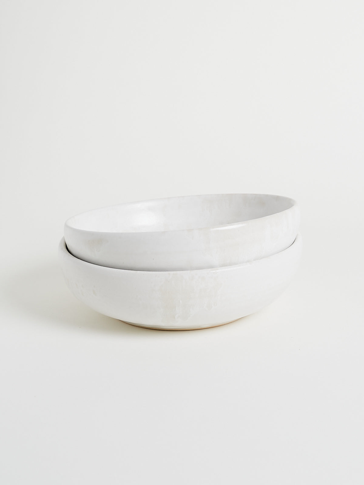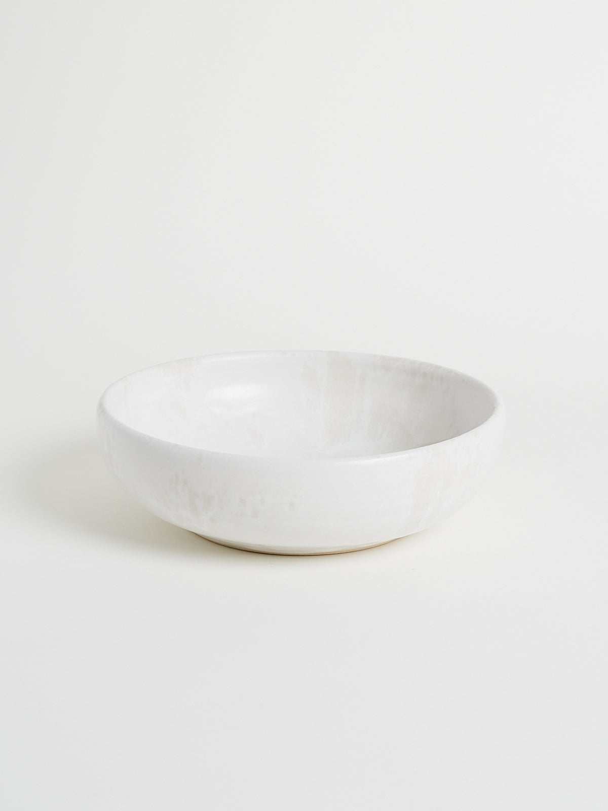 Hand-thrown, hand-glazed large shallow ceramic bowl in ivory shades. Each piece is created using ancient wheel-turning and glazing methods.