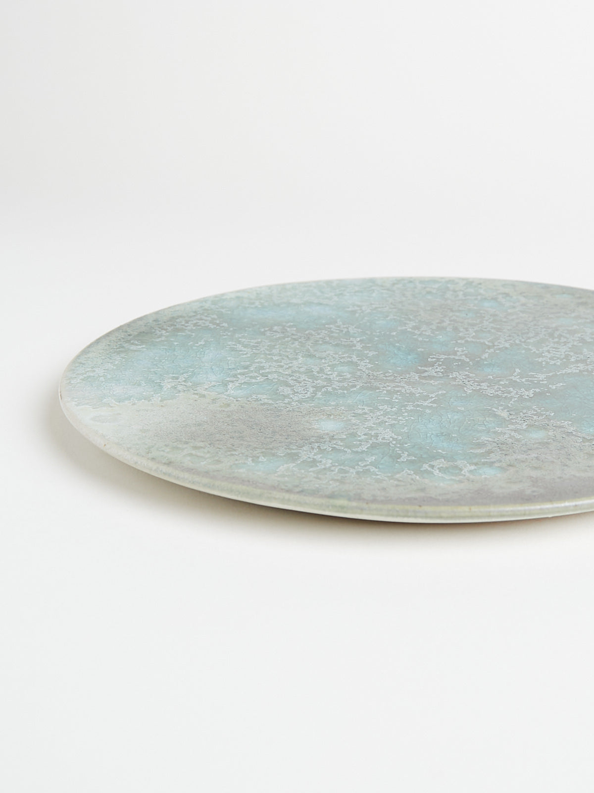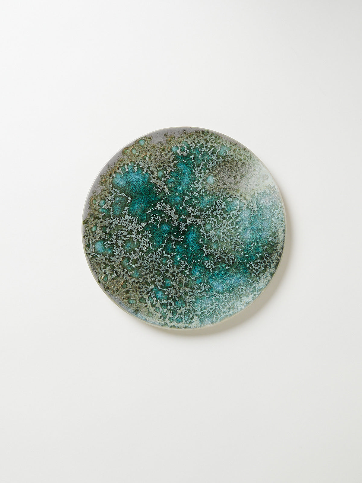 Hand-thrown, hand-glazed ceramic plate in green shades. Each piece is created using ancient wheel-turning and glazing methods.