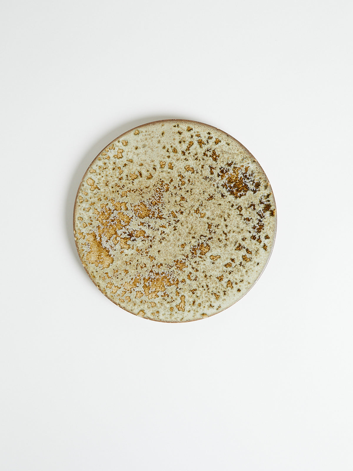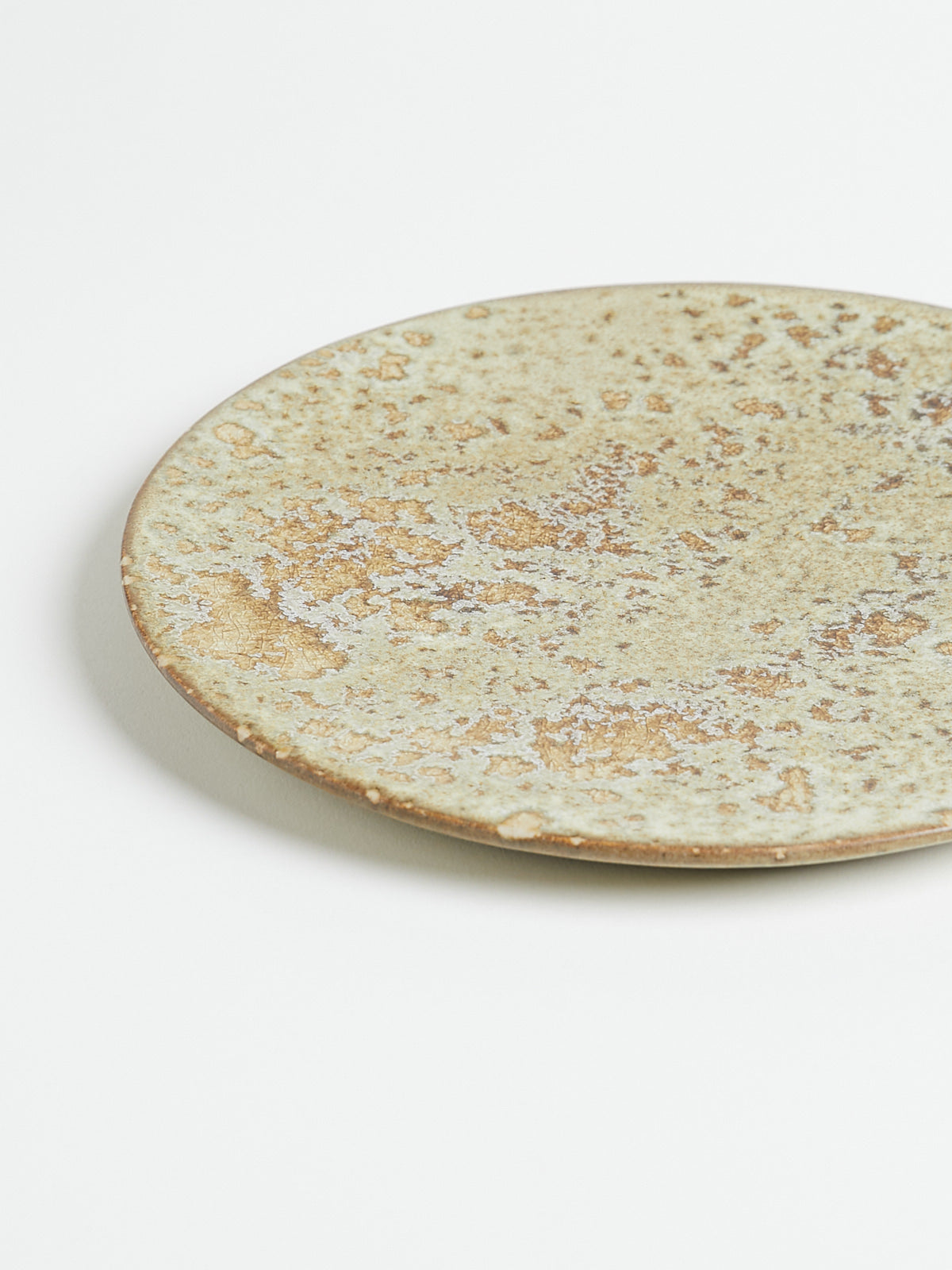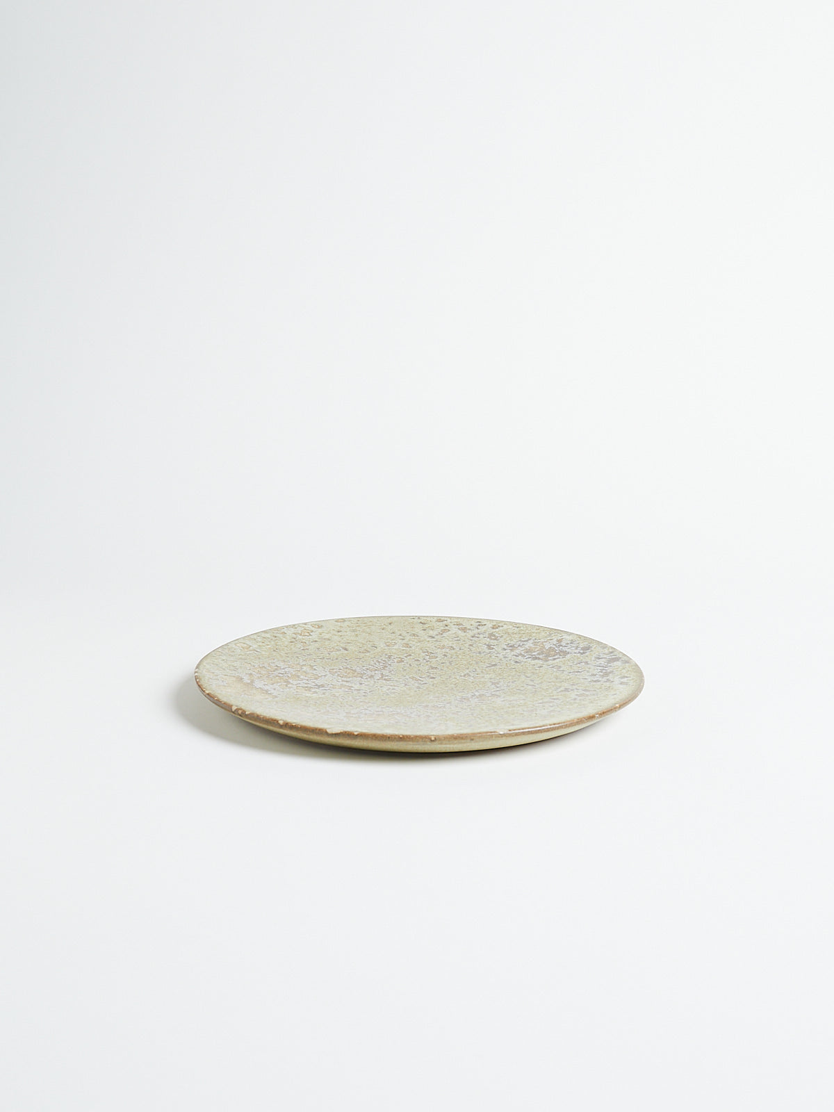 Hand-thrown, hand-glazed ceramic plate in white and yellow shades. Each piece is created using ancient wheel-turning and glazing methods.