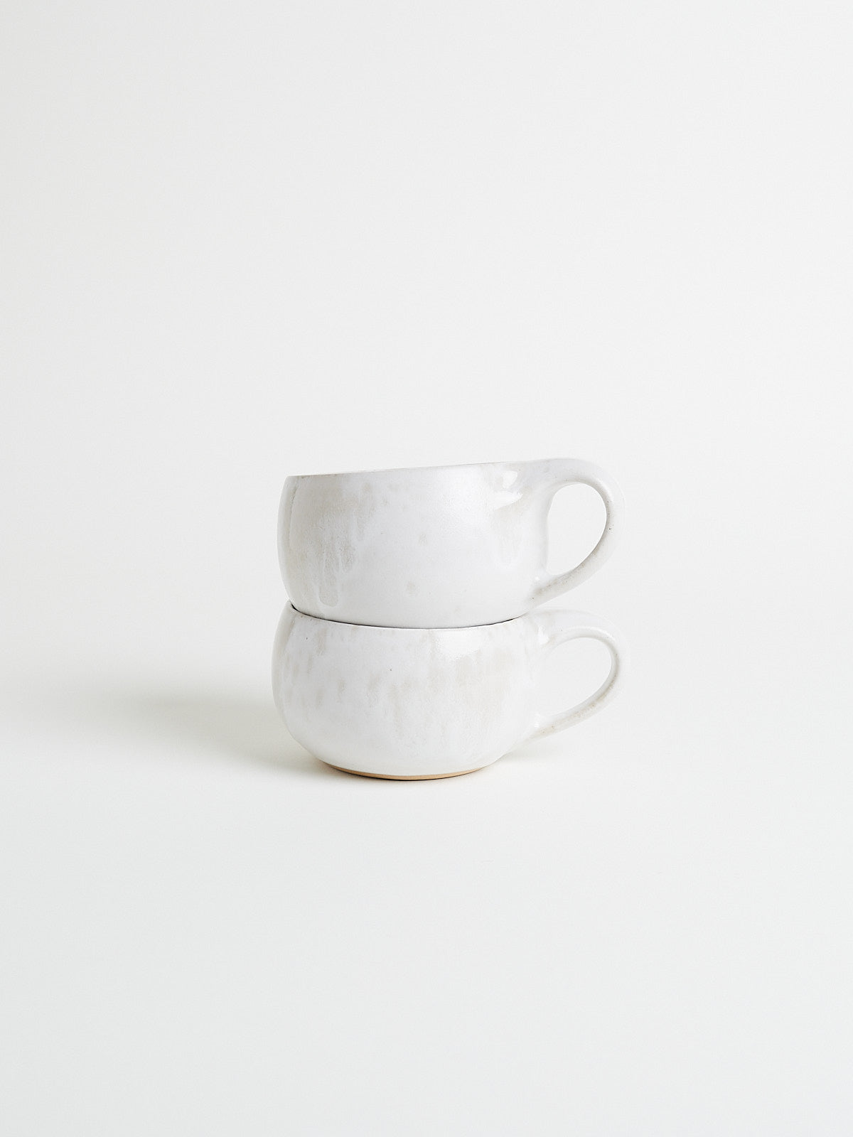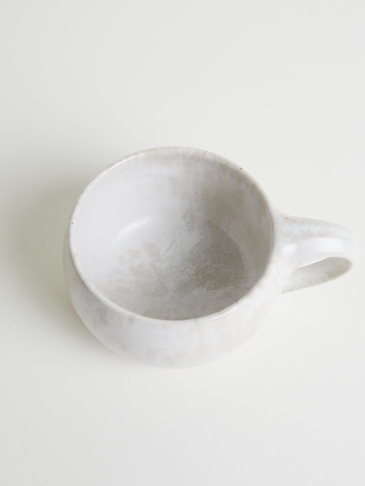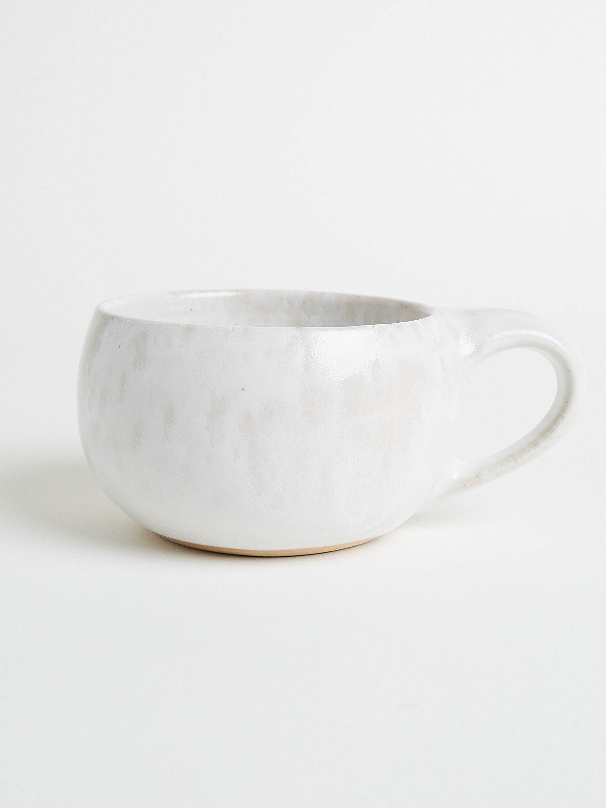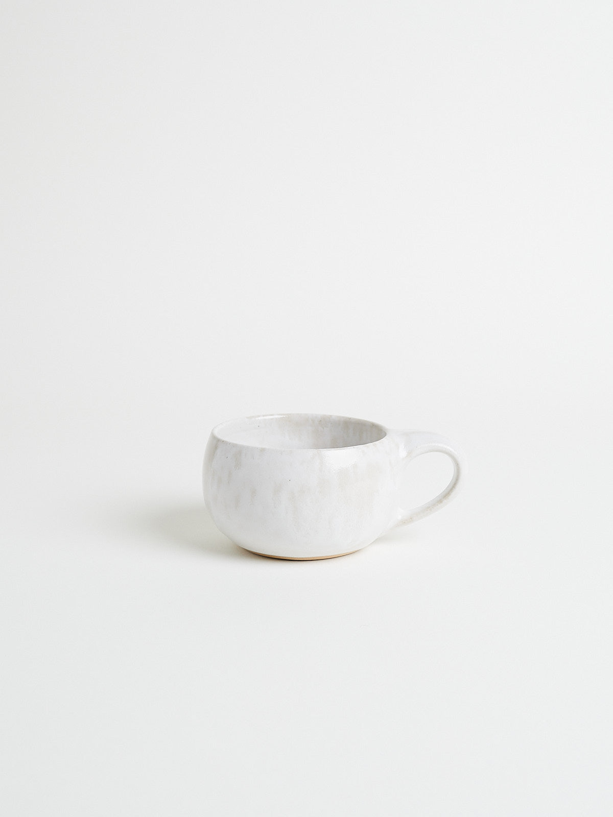 Hand-thrown, hand-glazed tea cup in ivory white shades. Each piece is created using ancient wheel-turning and glazing methods.