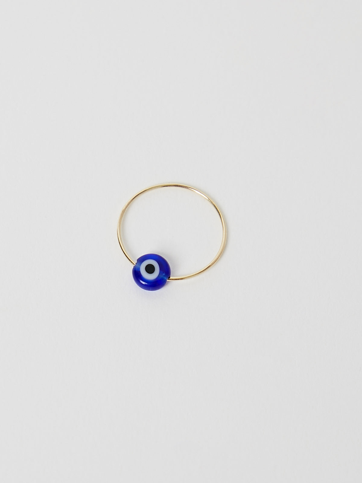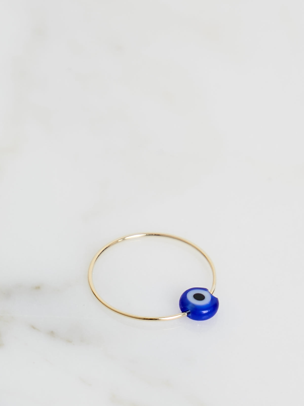 Handcrafted delicate ring made from 14k yellow gold wire with a glass eye bead. The bead has been passed through the wire enabling it to move.