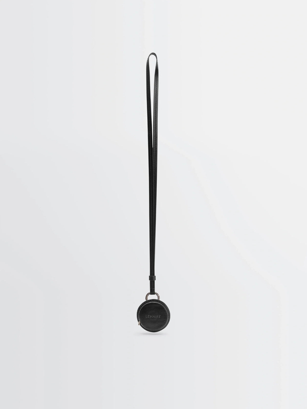 Necklace with a measuring tape crafted in black patinated silver LGW-certified molded leather. It is shaped whithout a metal structure, guaranteed a sculptural, yet lightweight effect. Features a removable leather strap with engraving on the metal hardware. Embossed Lemaire logo on the front.