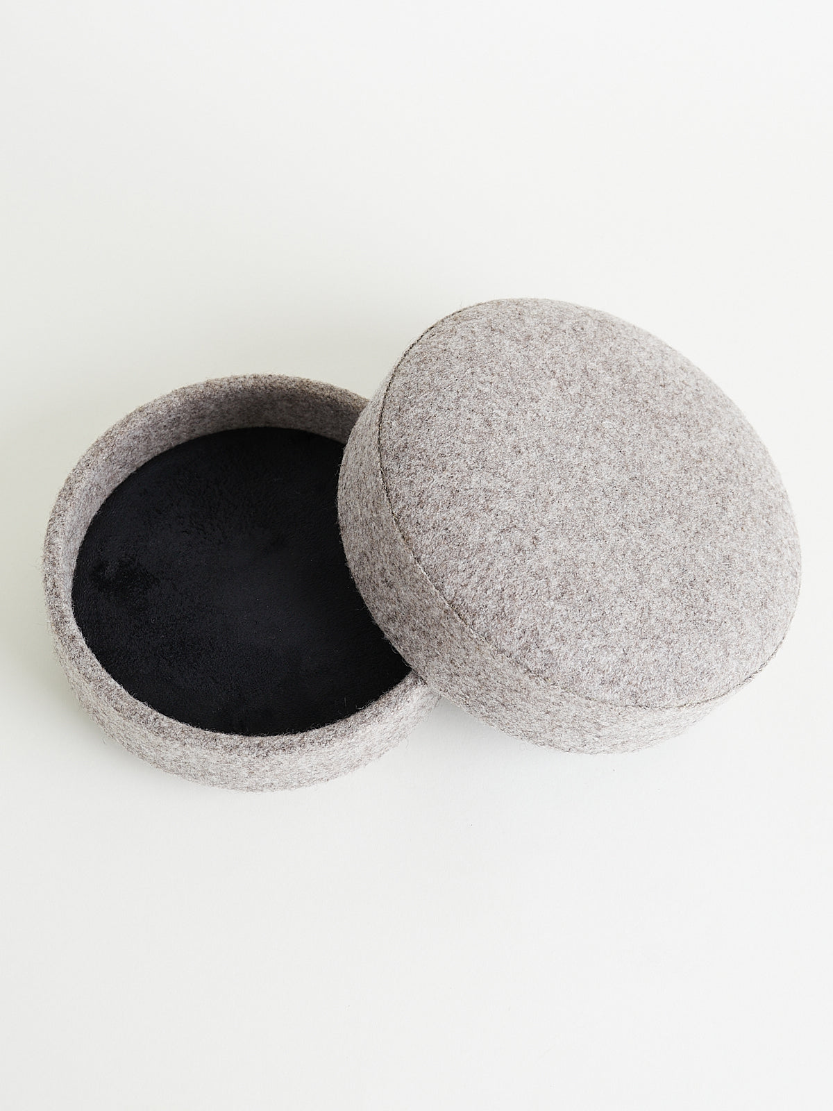 Flat box covered in taupe felt. Every piece is handmade and unique so finish might vary.