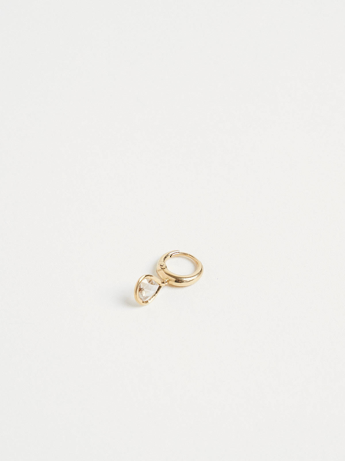 Single drop hoop in 18k yellow gold with a 0.32ct brown rose cut diamond. Features a hinged backing.