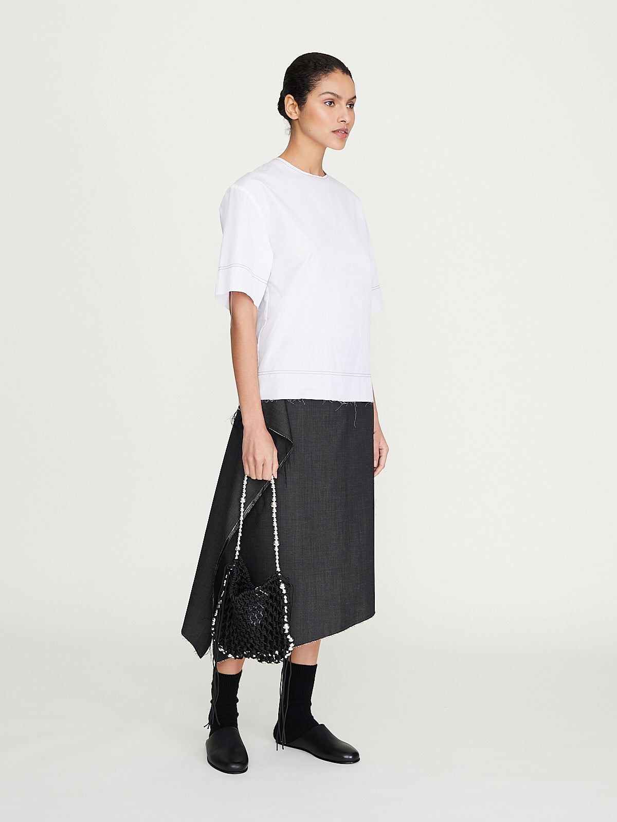Niccolò Pasqualetti proposes an eclectic and ambiguous wardrobe reinterpretted from the sartorial codes of Italian heritage. Unseen shapes emerge from intuitions and the geometries of nature. Forgotten things are found again, and are worn as reminders of the past, the present, the future. And in the space between classic womenswear and menswear, a new mode of dressing is revealed. Every detail is considered to allow for a deep integration into everyday life.