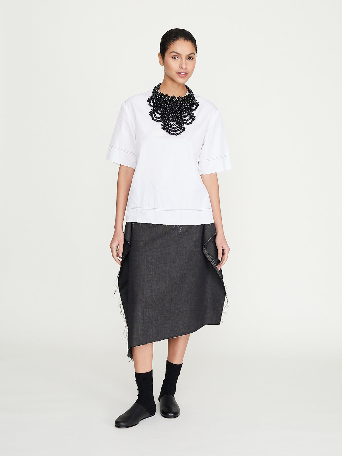 Niccolò Pasqualetti proposes an eclectic and ambiguous wardrobe reinterpretted from the sartorial codes of Italian heritage. Unseen shapes emerge from intuitions and the geometries of nature. Forgotten things are found again, and are worn as reminders of the past, the present, the future. And in the space between classic womenswear and menswear, a new mode of dressing is revealed. Every detail is considered to allow for a deep integration into everyday life.