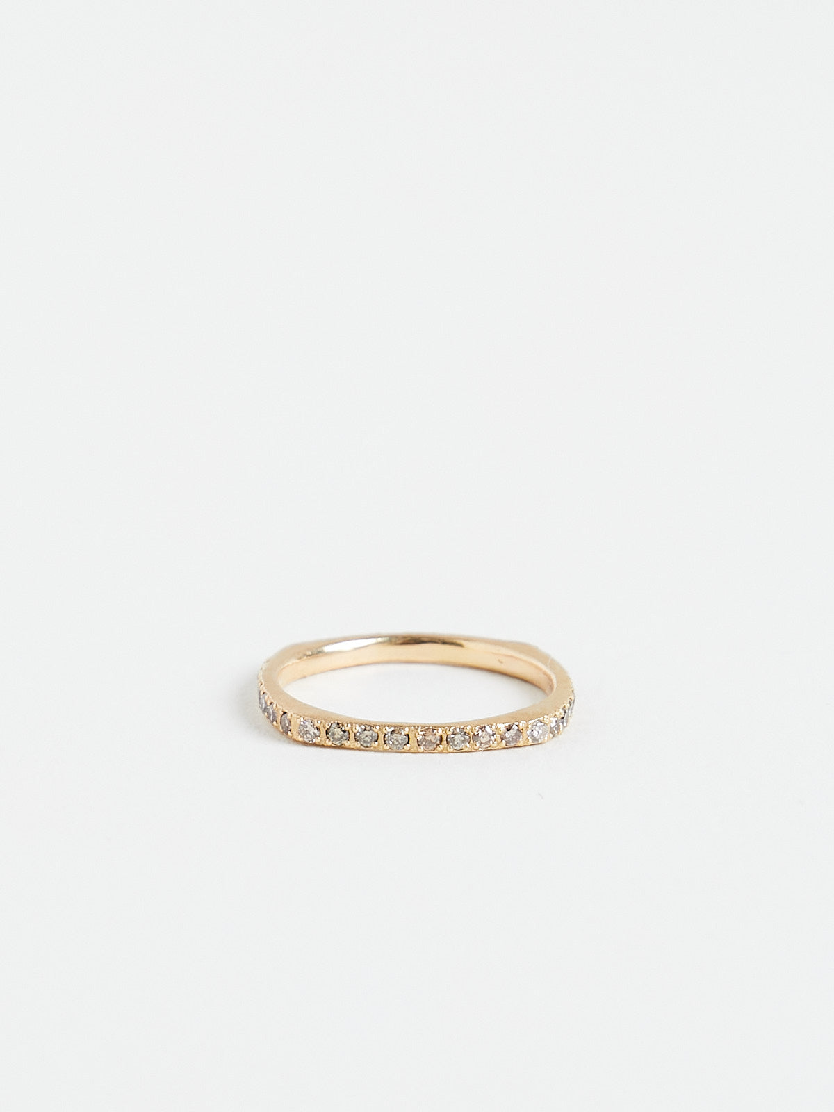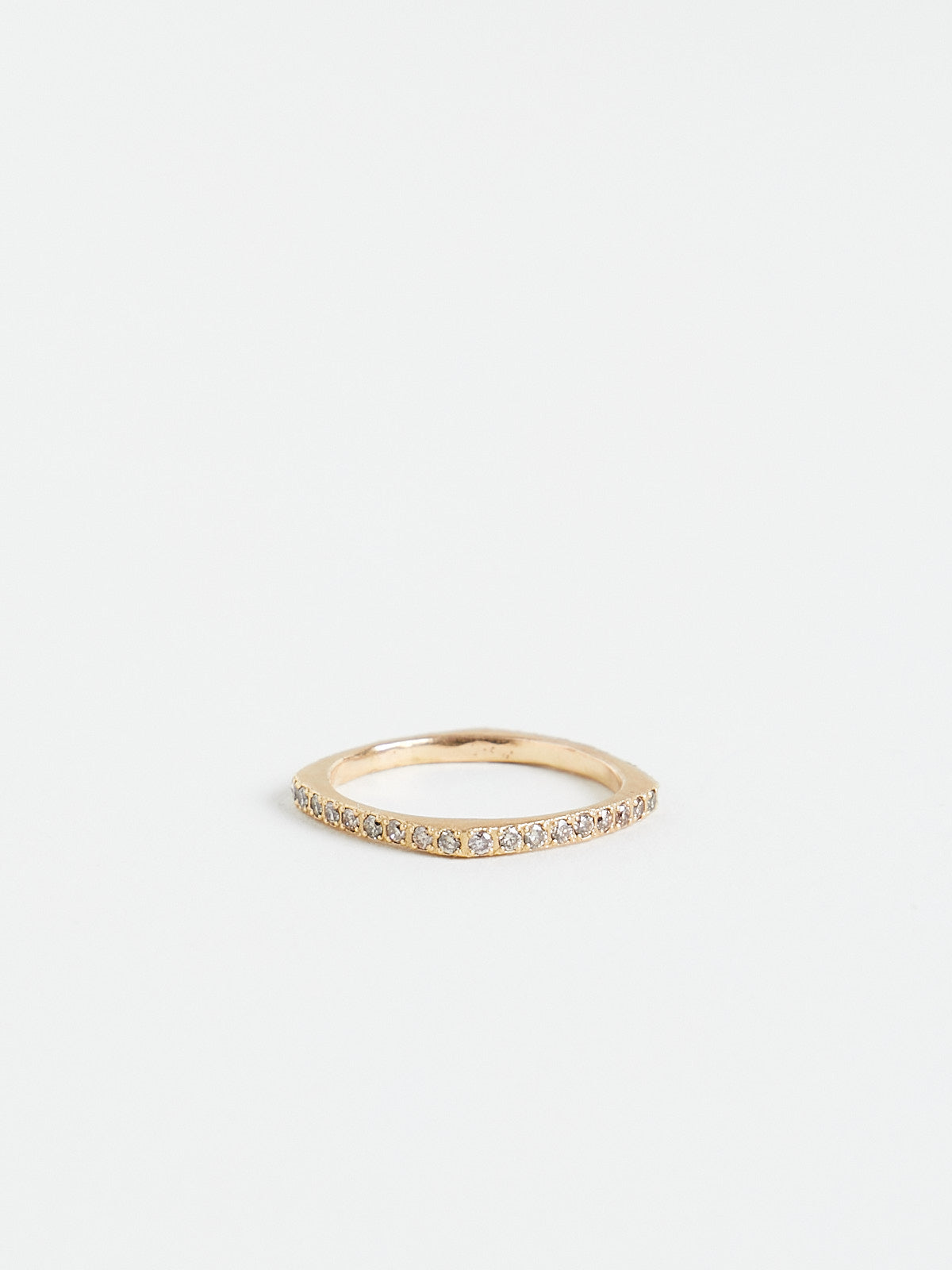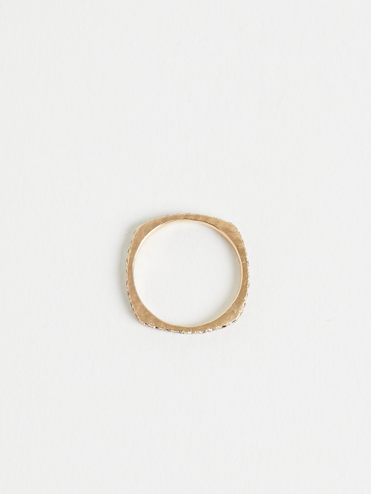 Delicate ring with a subtle square shape in 14k yellow gold and encrusted with 36 brown (0.5ct) diamonds.