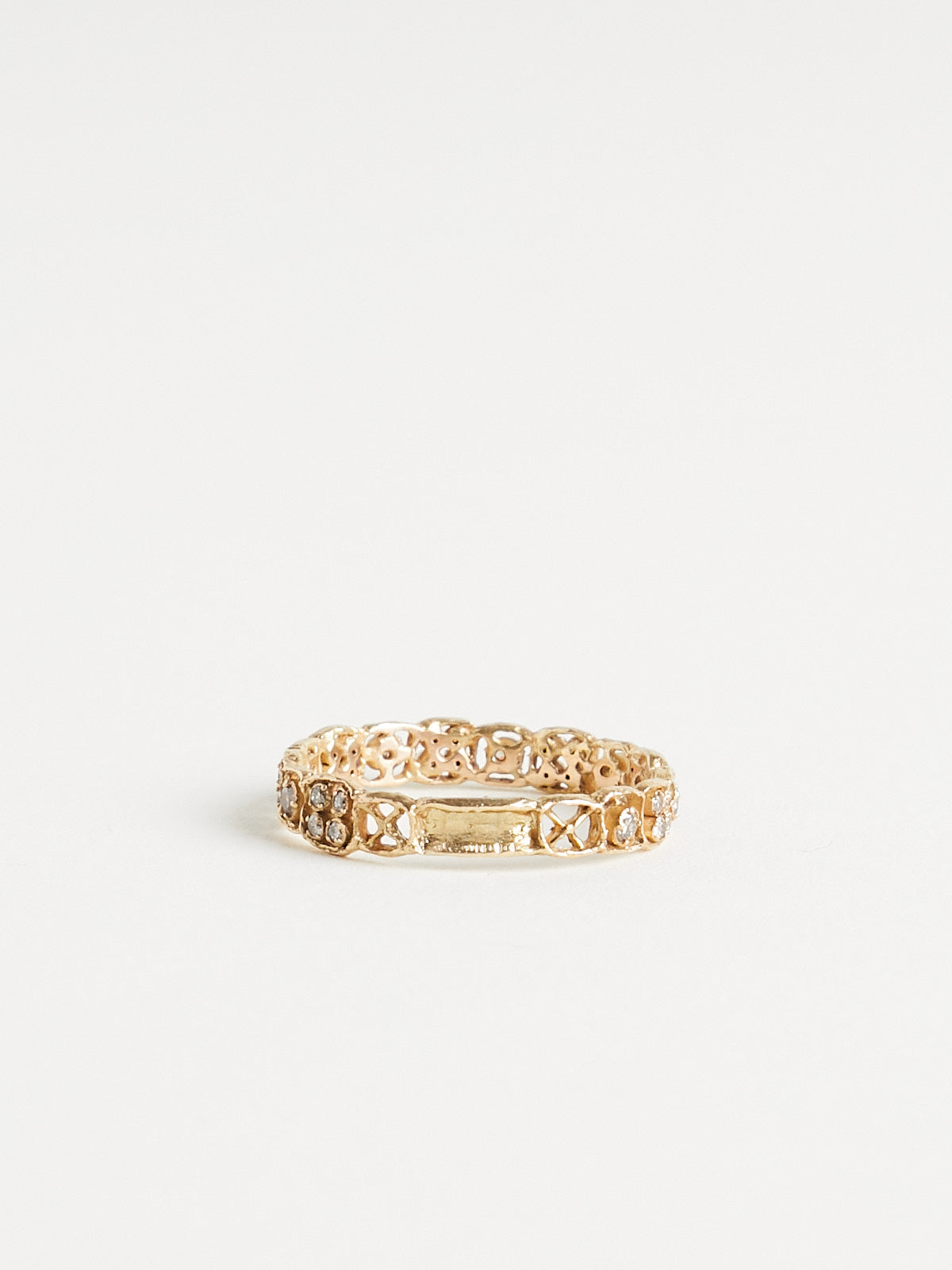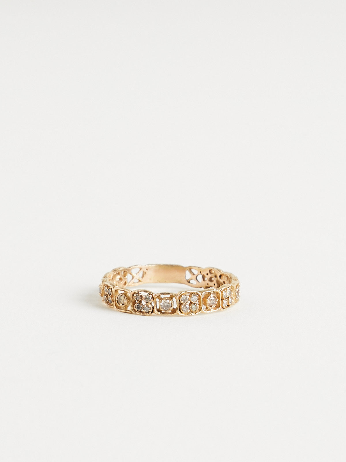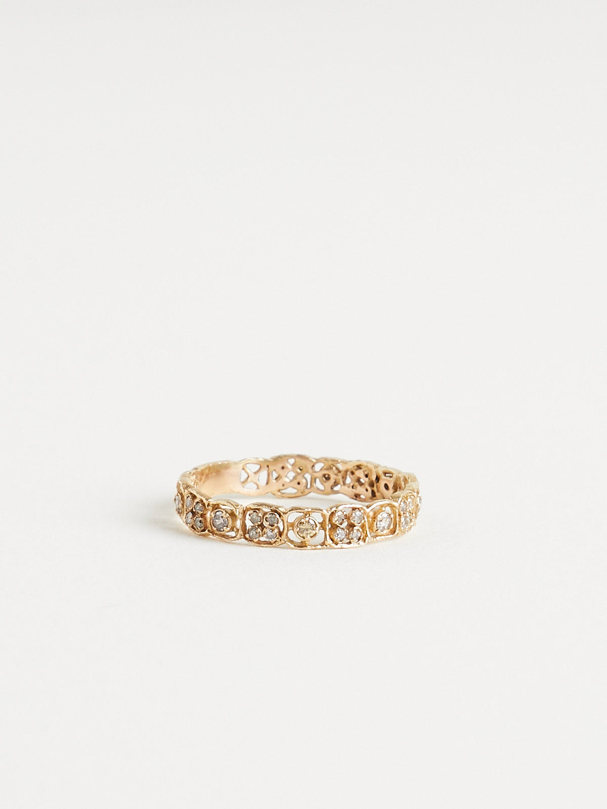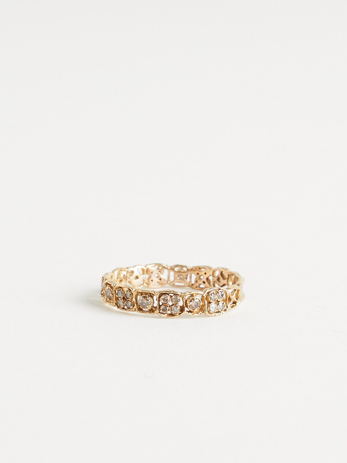 Ornamental ring in 14k yellow gold encrusted with 35 brown (021ct) diamonds.