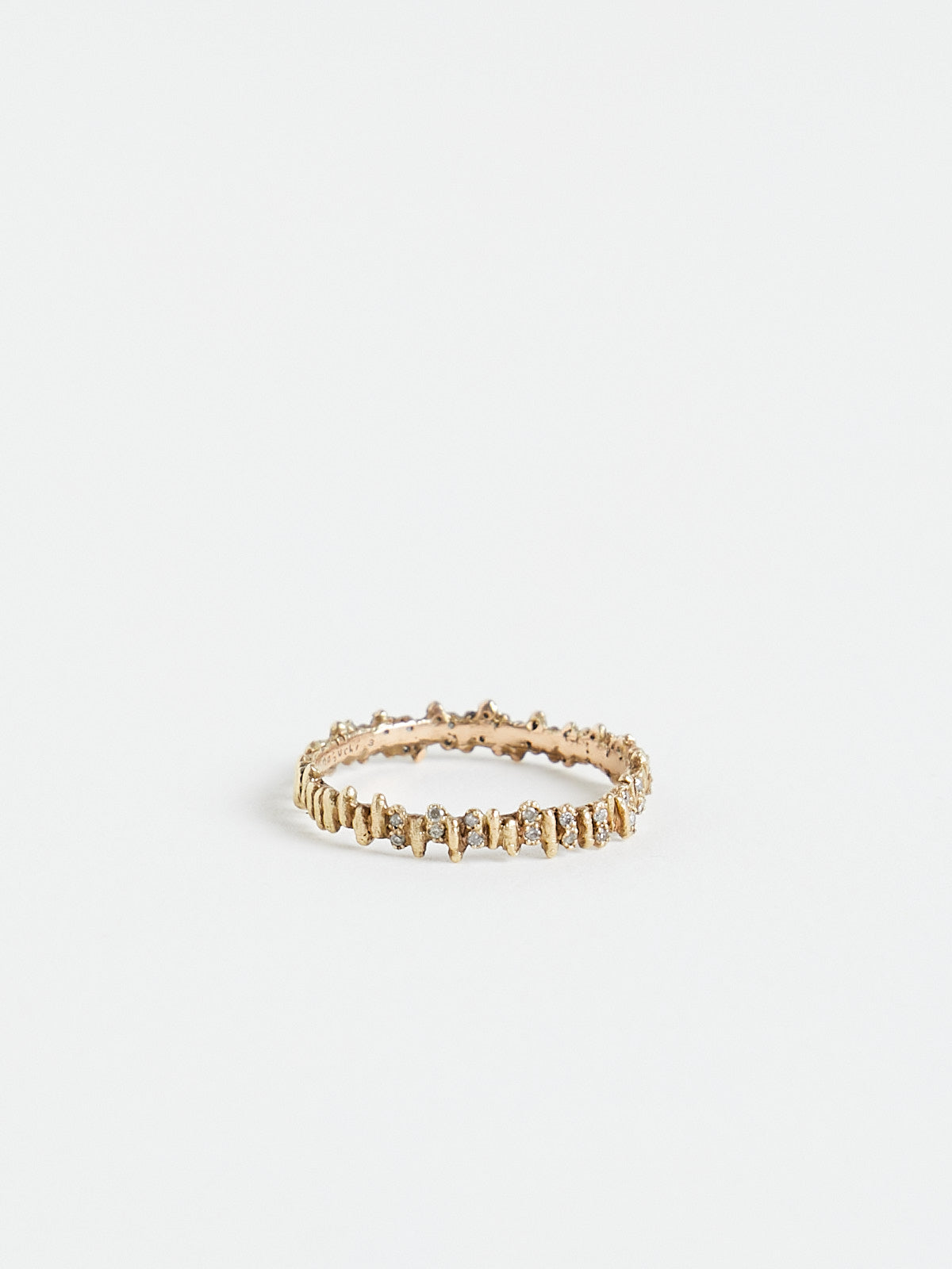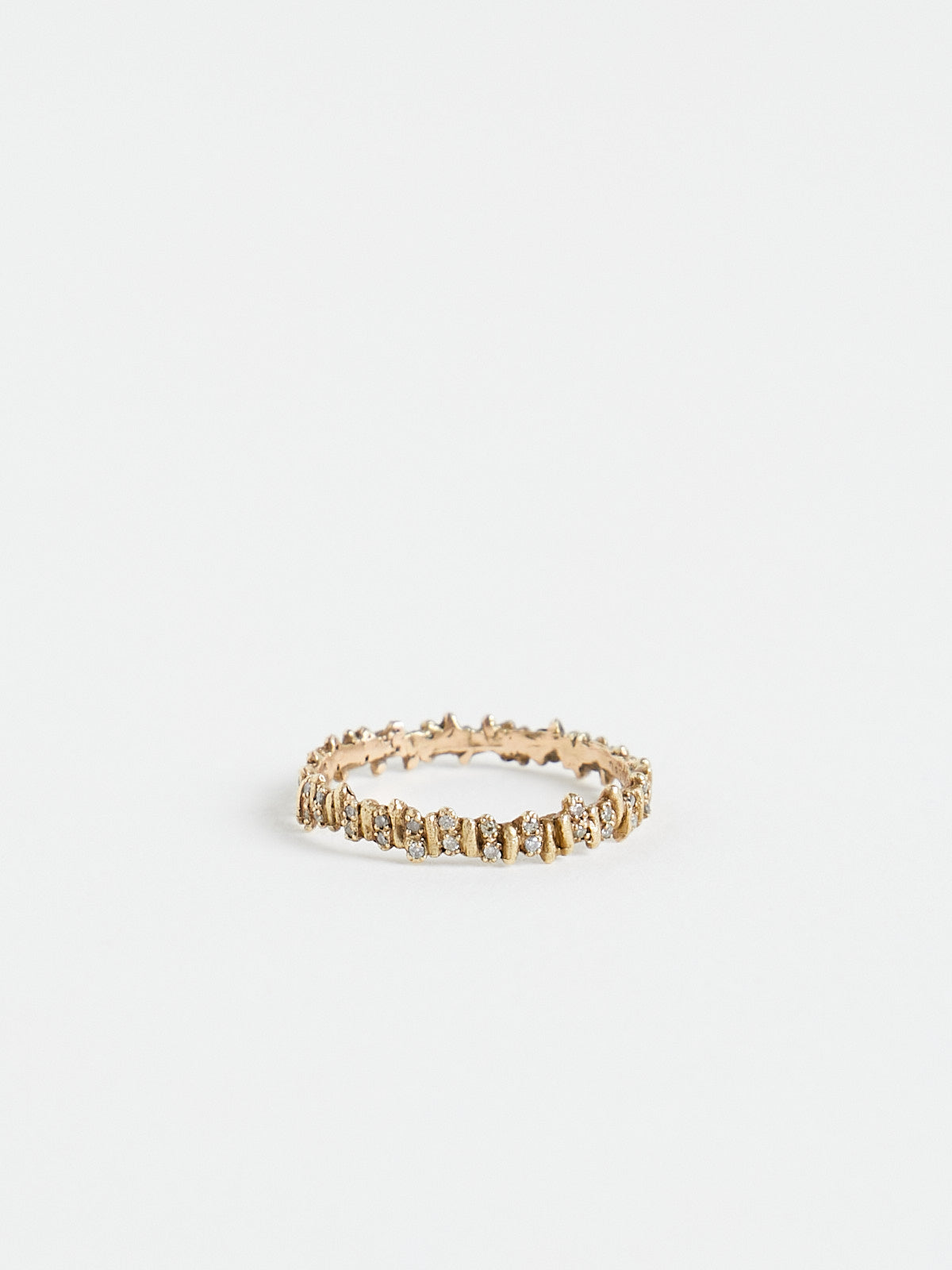 Delicate ring in 14k yellow gold encrusted 36 (011.ct) brown diamonds.