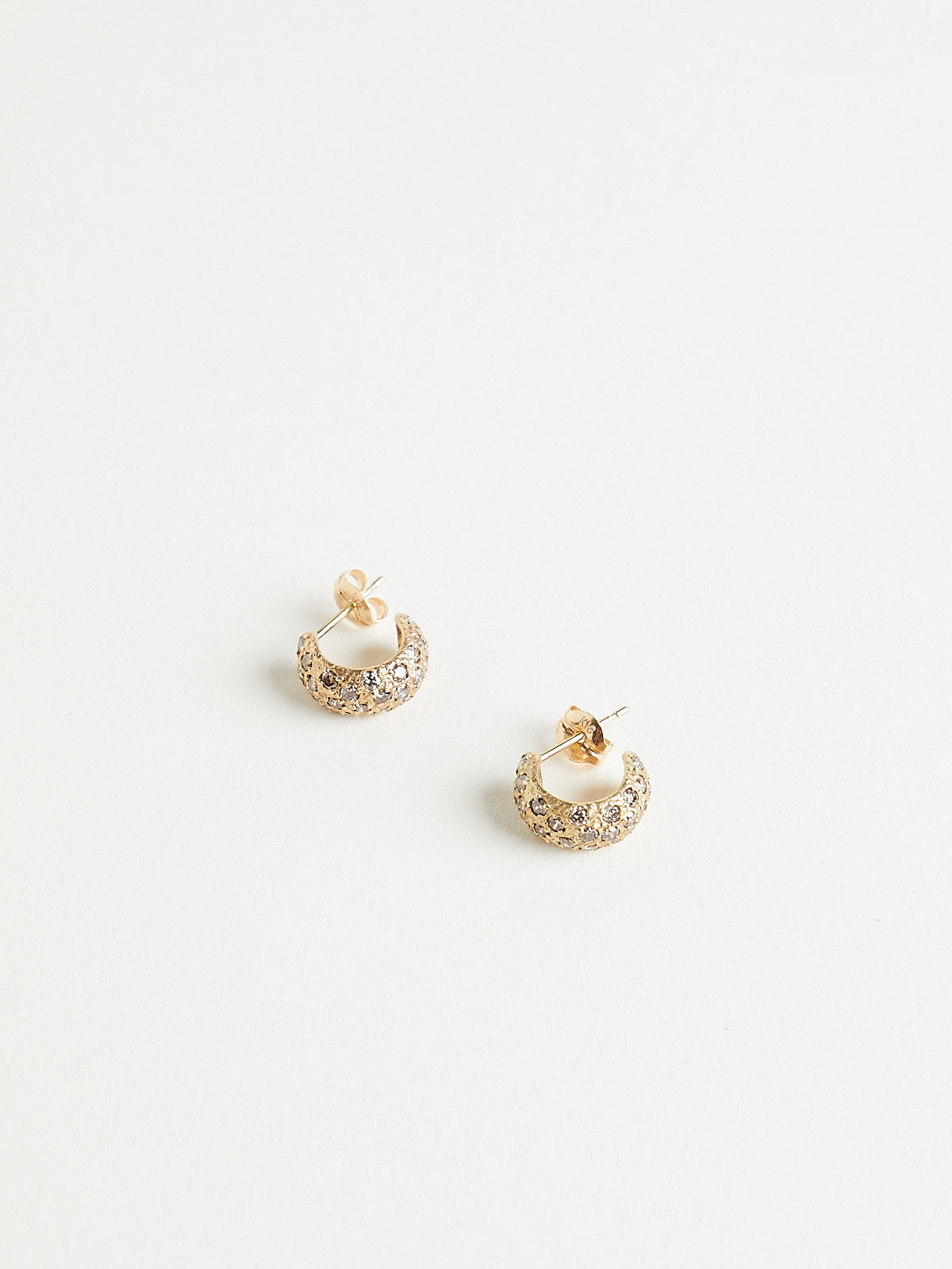 Ear hoops in 14k yellow gold encrusted 56 brown (0.78ct) diamonds. Features an ear post backing.
