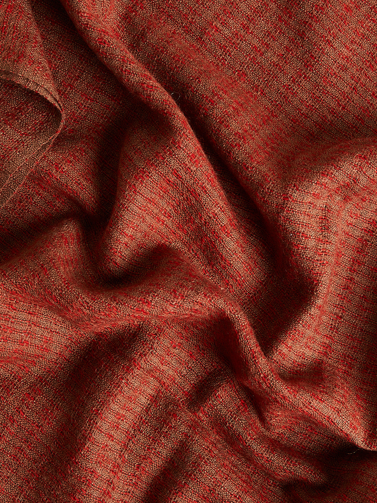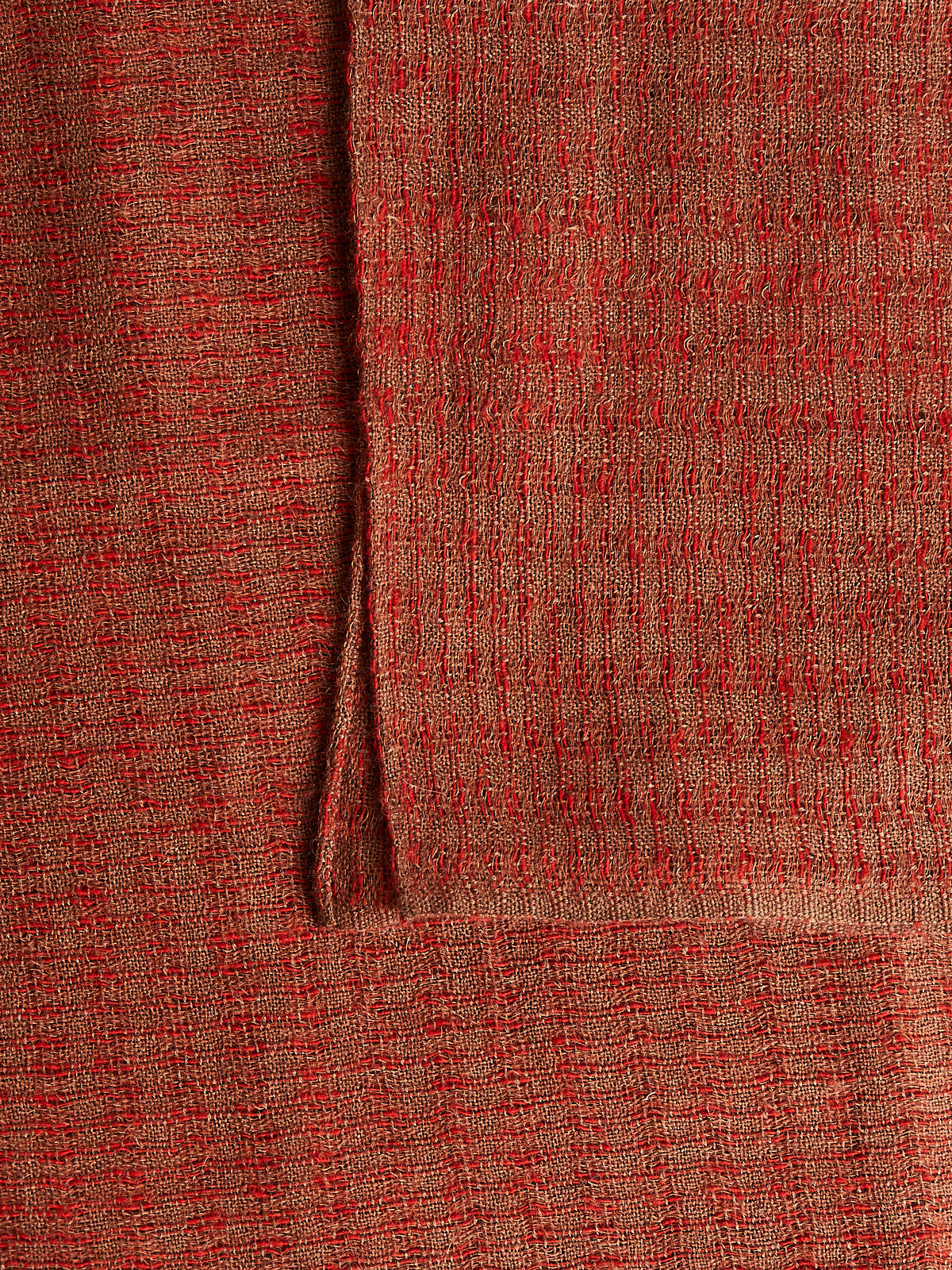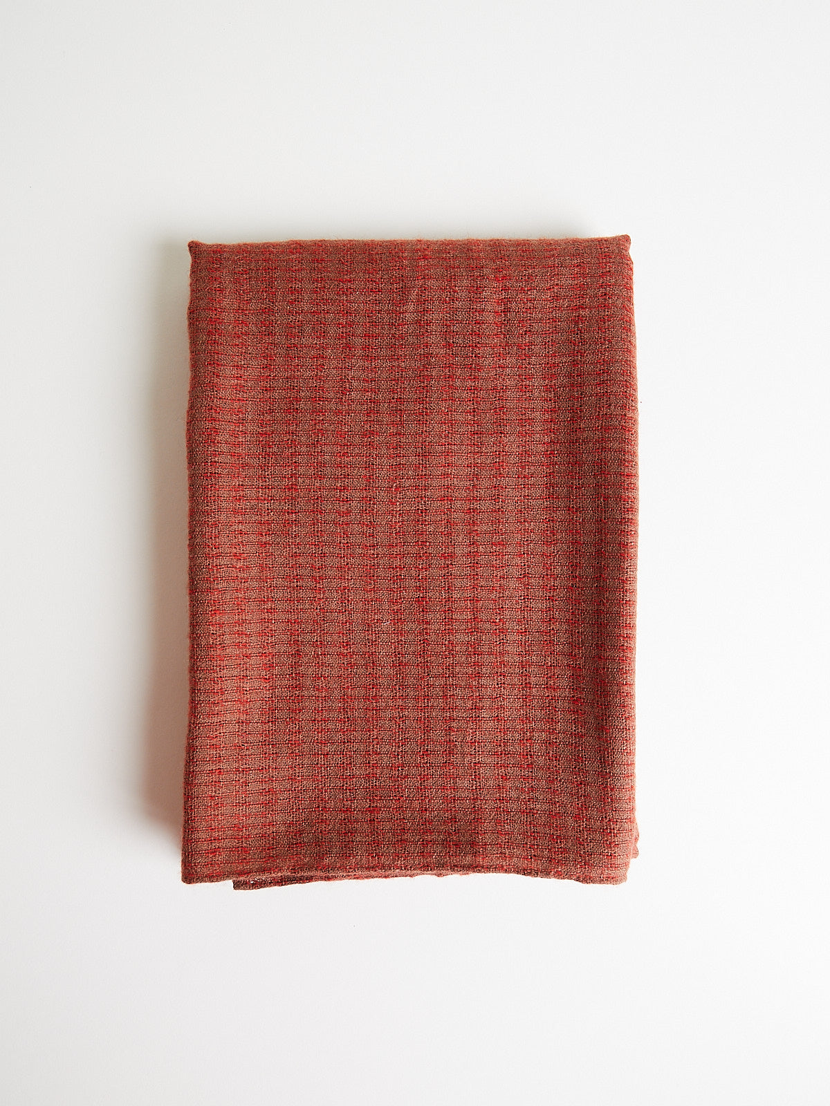 Handmade scarf made from a soft red yak khullu/silk blend with a subtle checked pattern.