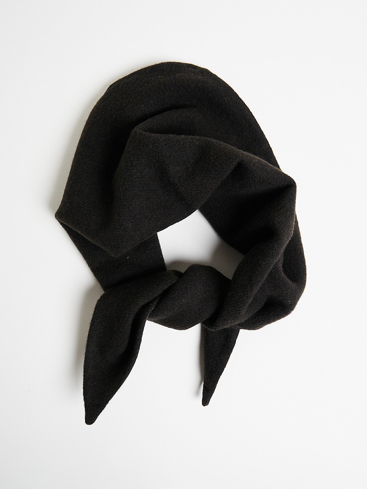 Scarf made from lightweight, natural and biodegradable dark brown wool fleece-pile with a fluffy soft surface.