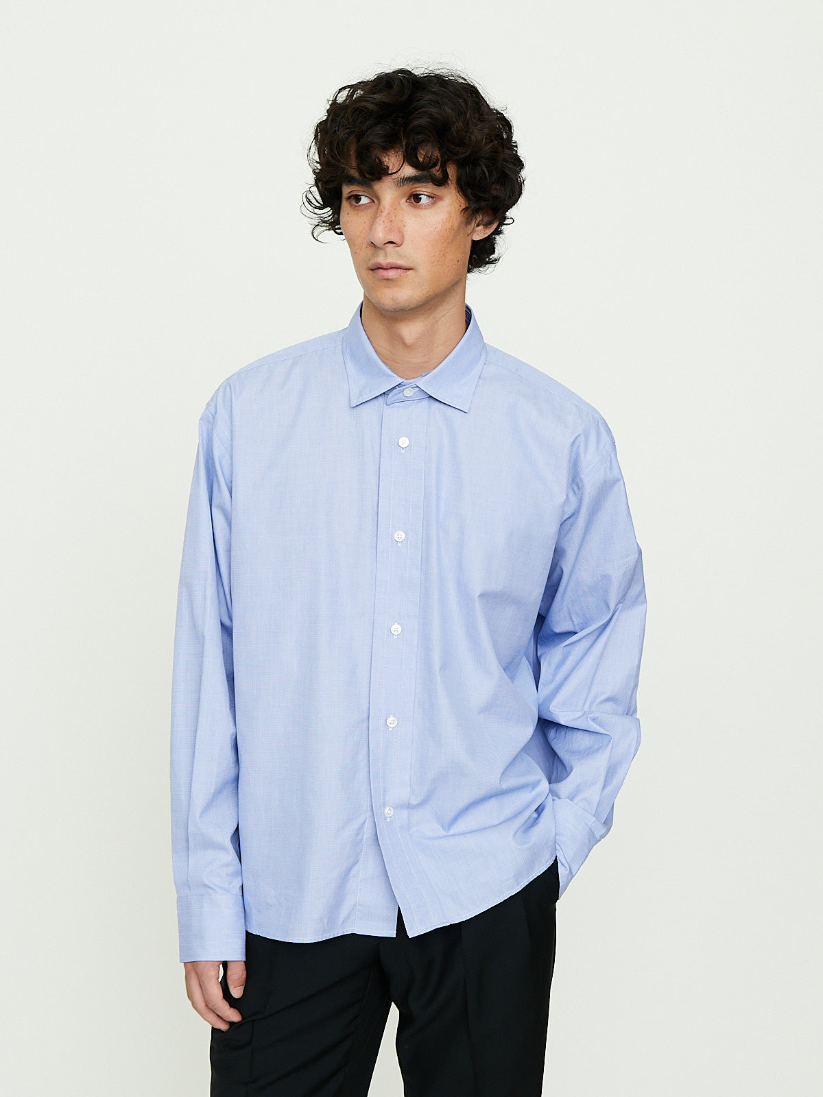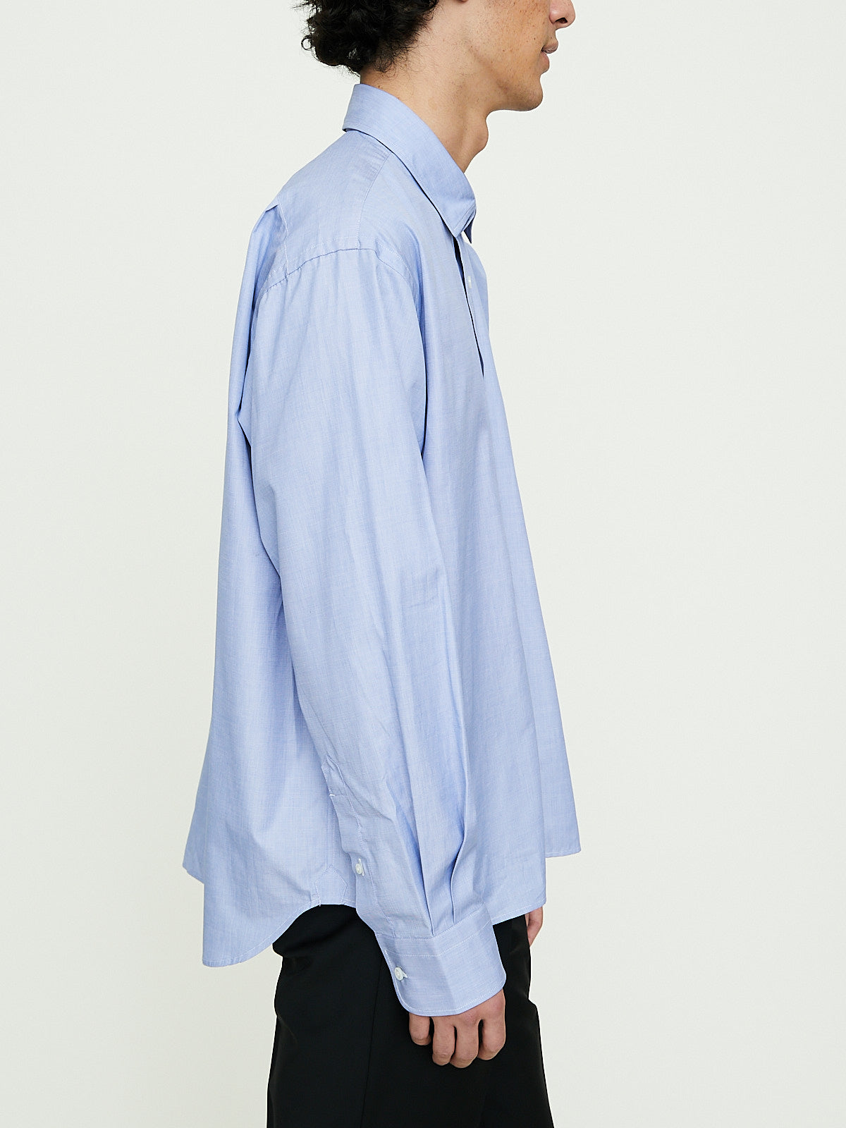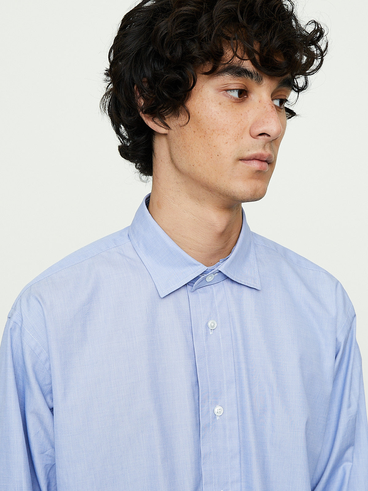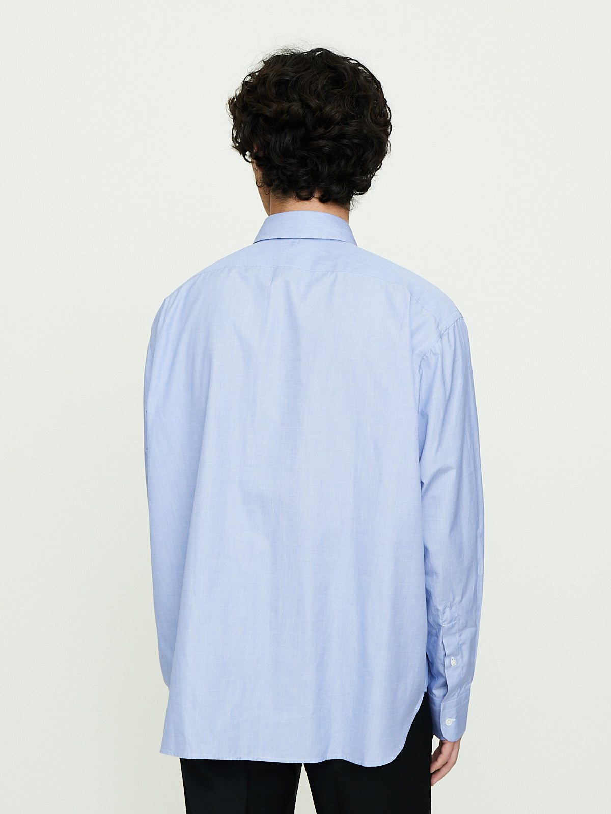 Classic shirt in blue cotton. Double collar, front button fastening and long sleeves with a dropped shoulder and buttoned cuffs. Features a back yoke and a hemline that is straight on the front and curved at the back. Regular fit.
