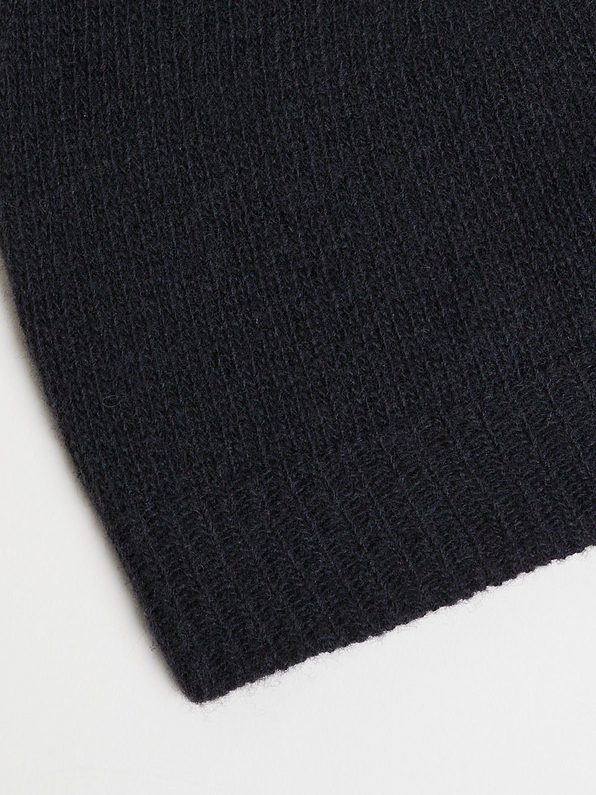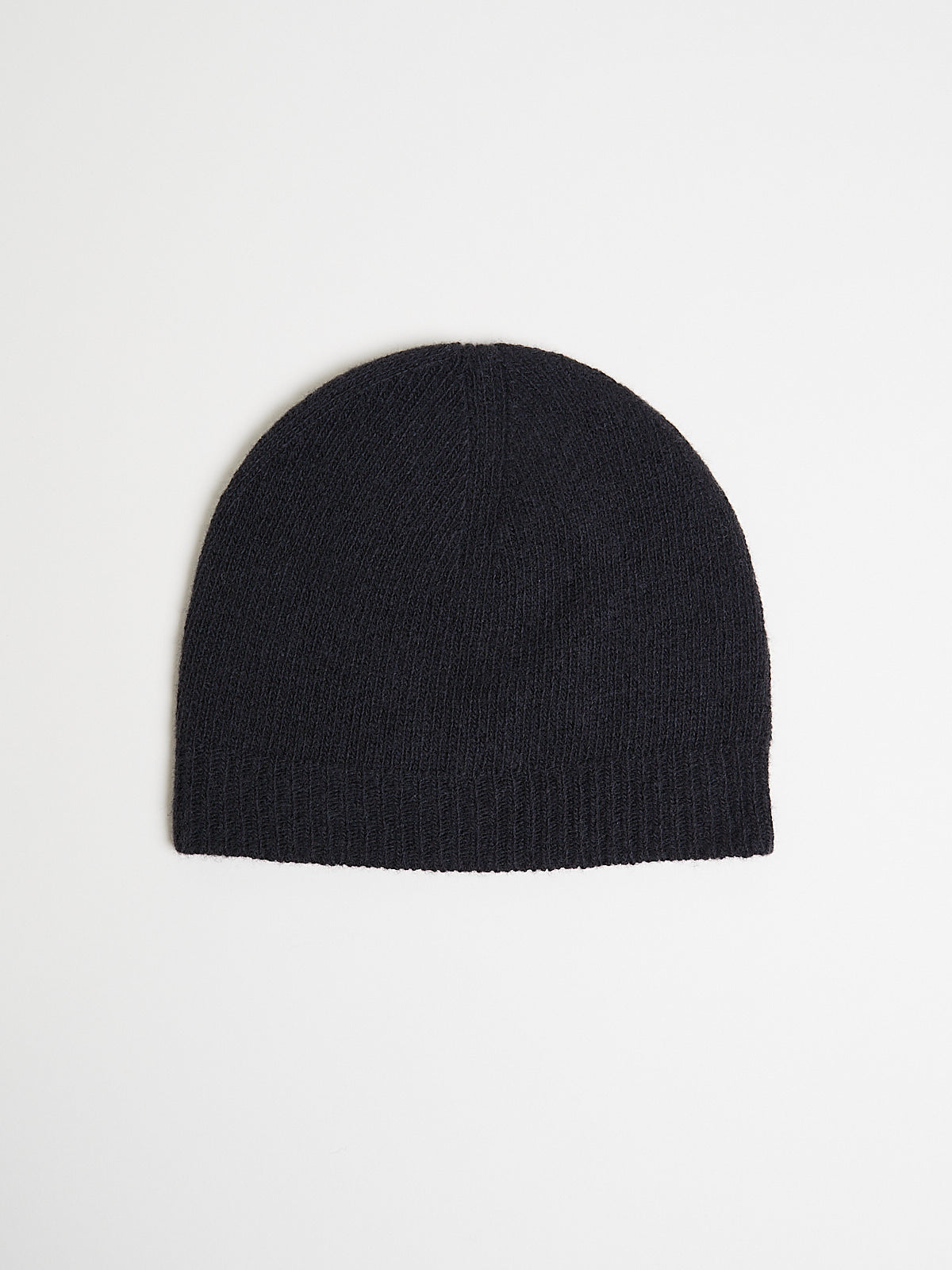 Knitted beanie in super fine off black Super 100s wool. Features a ribbed cuff.