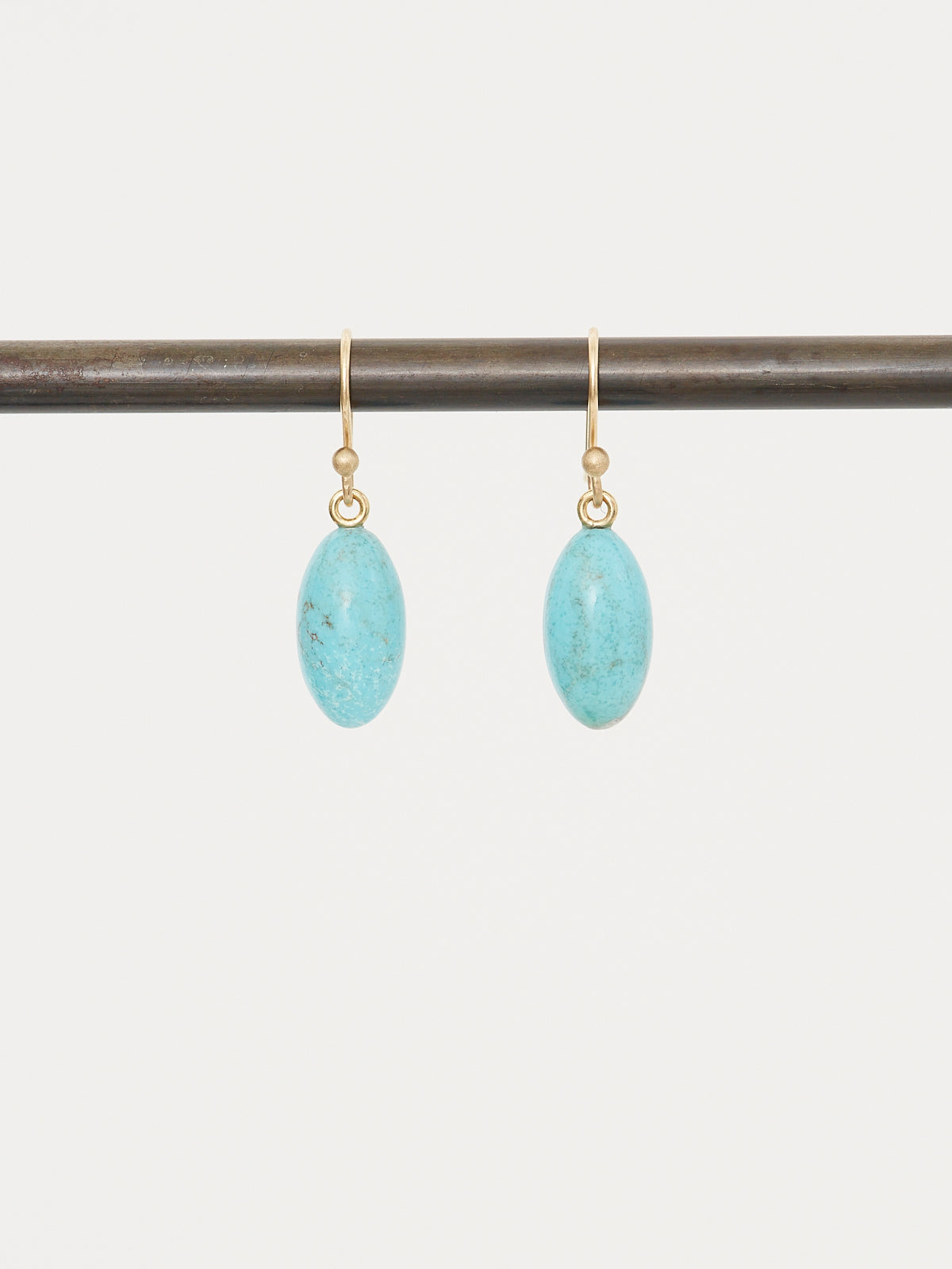 Berry-shaped earrings in turquoise with 14k solid yellow gold ear wires.