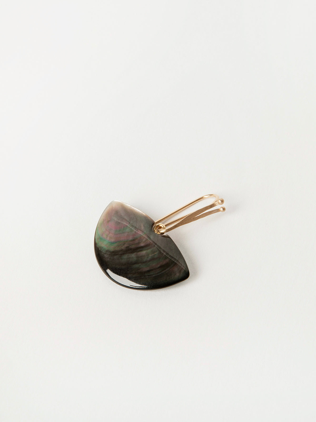 Moth earrings in 14k yellow gold with black mother of pearl. Features an ear wire backing.