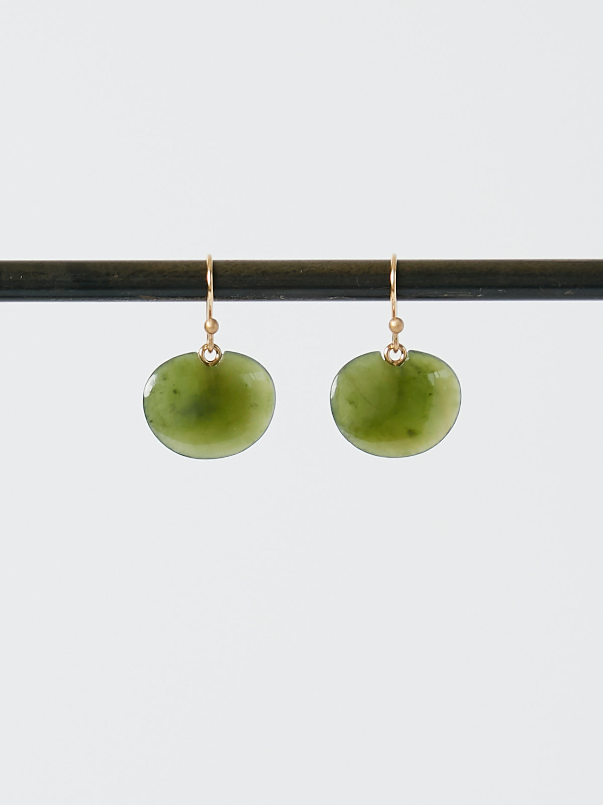 Lily pad earrings in jade on 14k solid yellow gold ear wires.