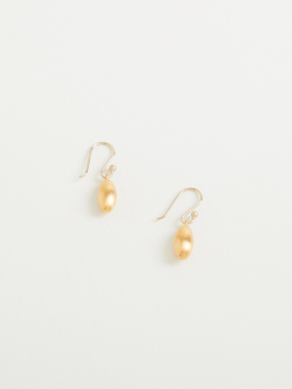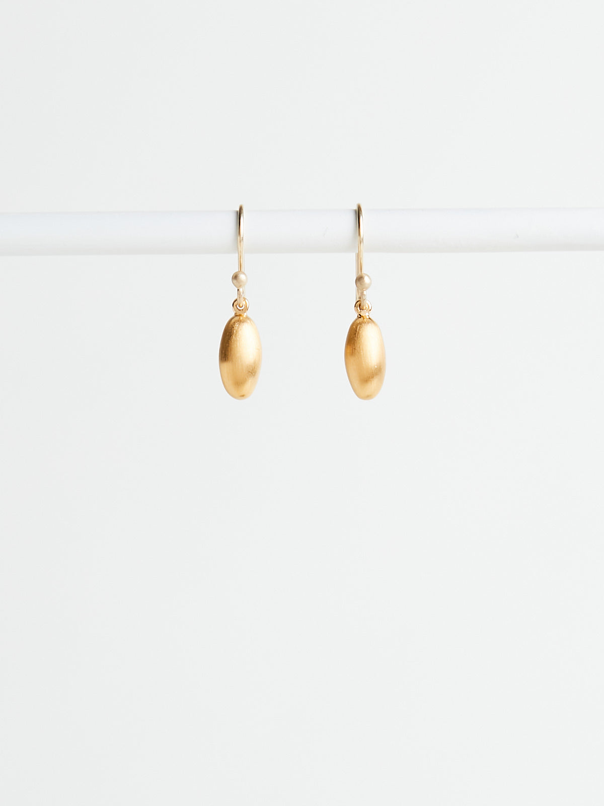 Brushed 24k yellow gold plated melon earrings with 14k solid yellow gold ear wires.