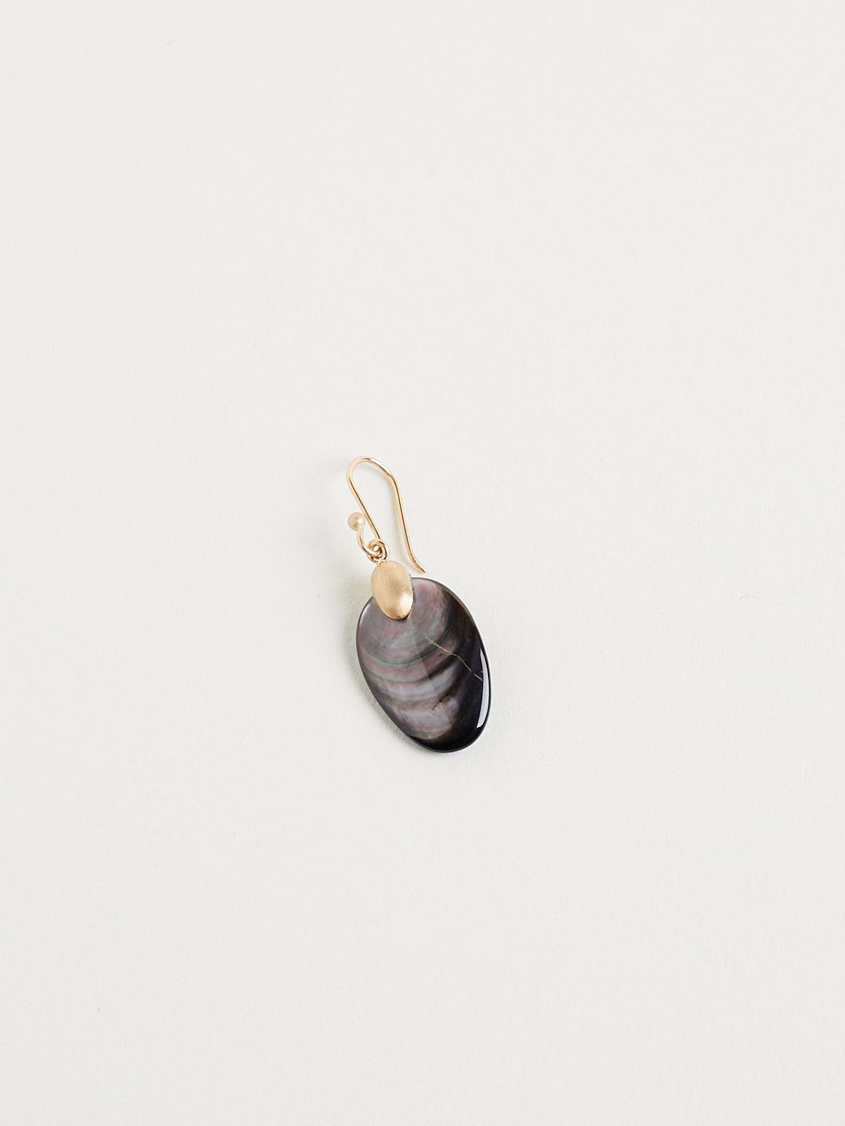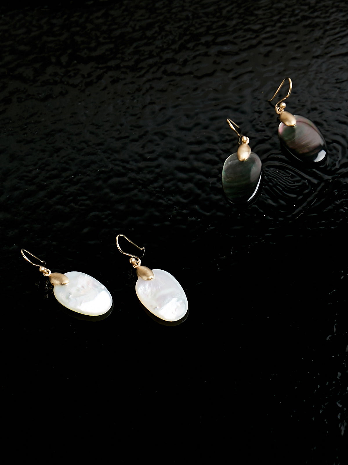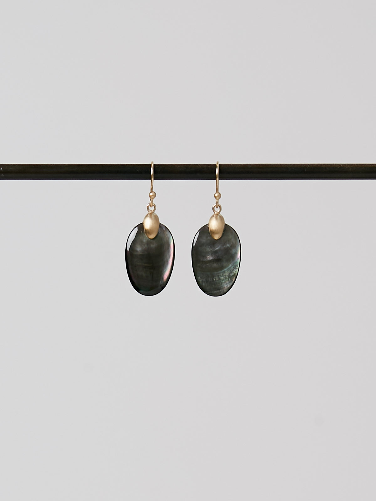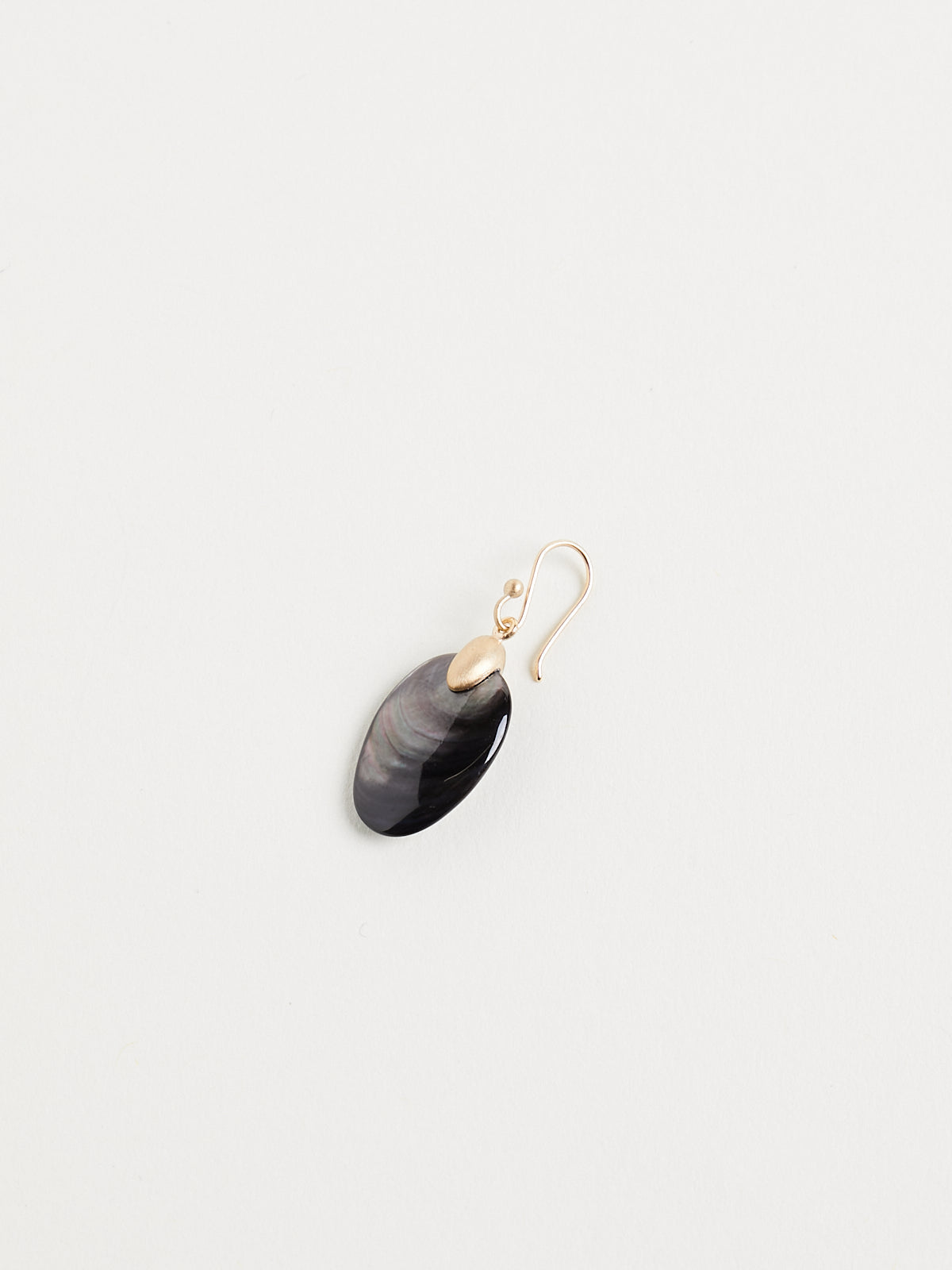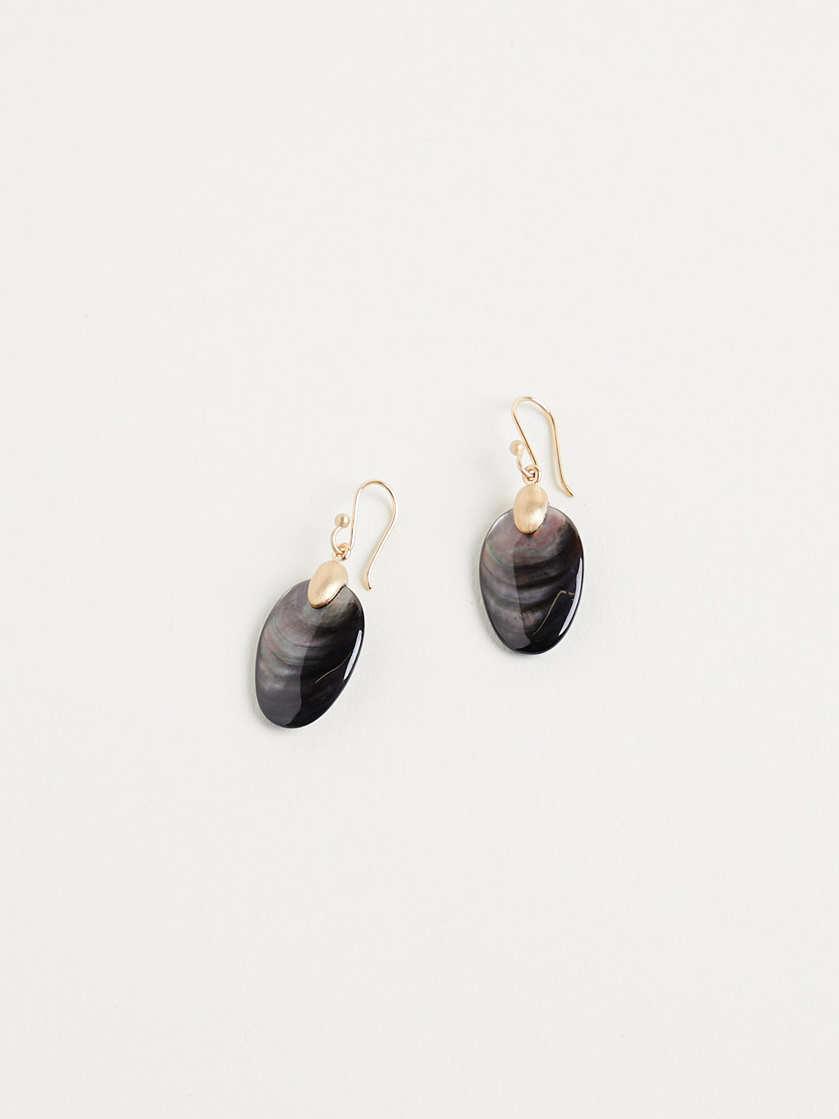 Small chip earrings in black mother of pearl with 14k solid yellow gold ear wires.