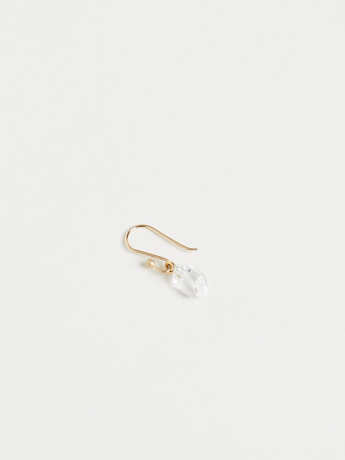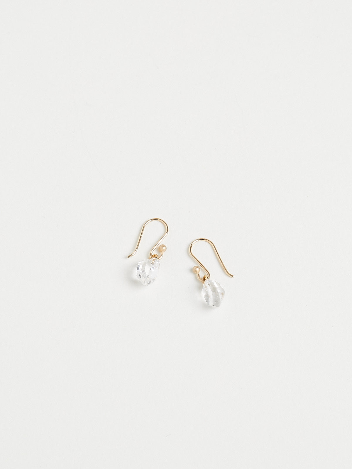 Earrings in 14k yellow gold with small Herkimer diamond drops. Features an ear wire backing.