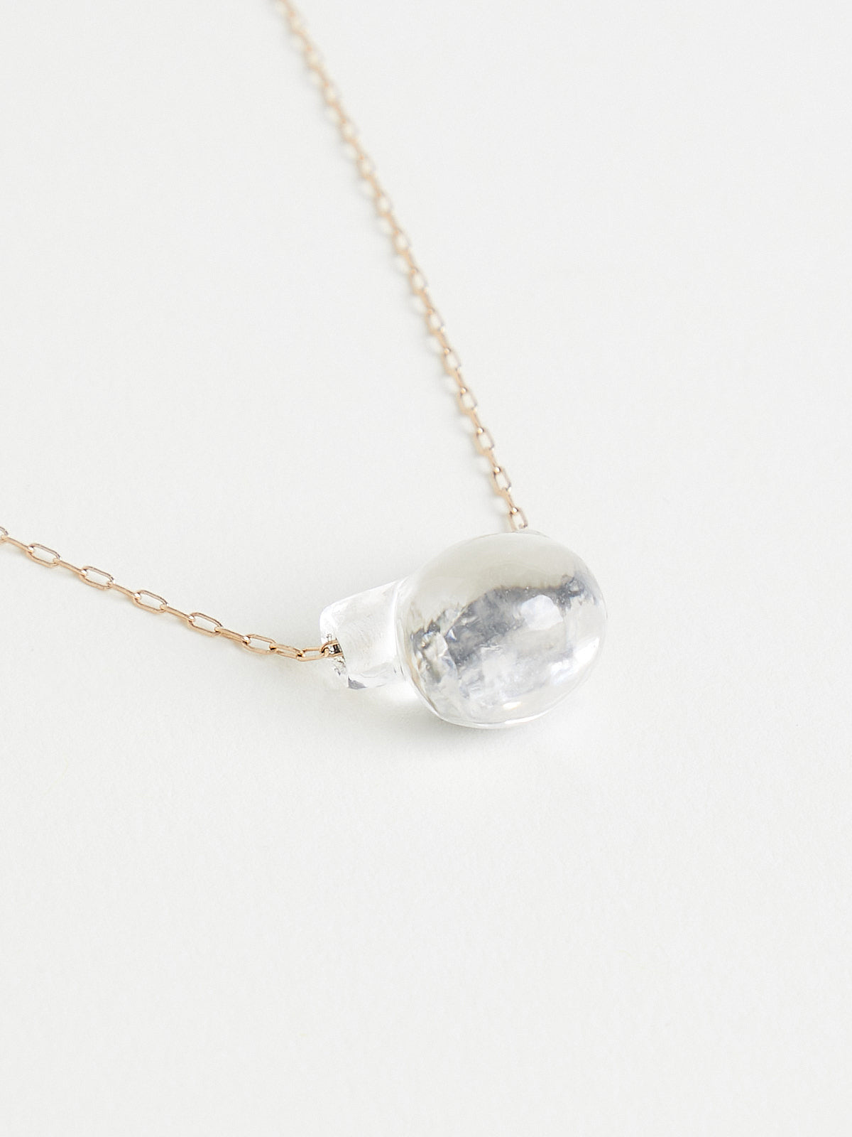 Handmade necklace with a delicate 18k yellow gold chain and a small hand-cut crystal Etruscan bead. Features a fish hook clasp.
