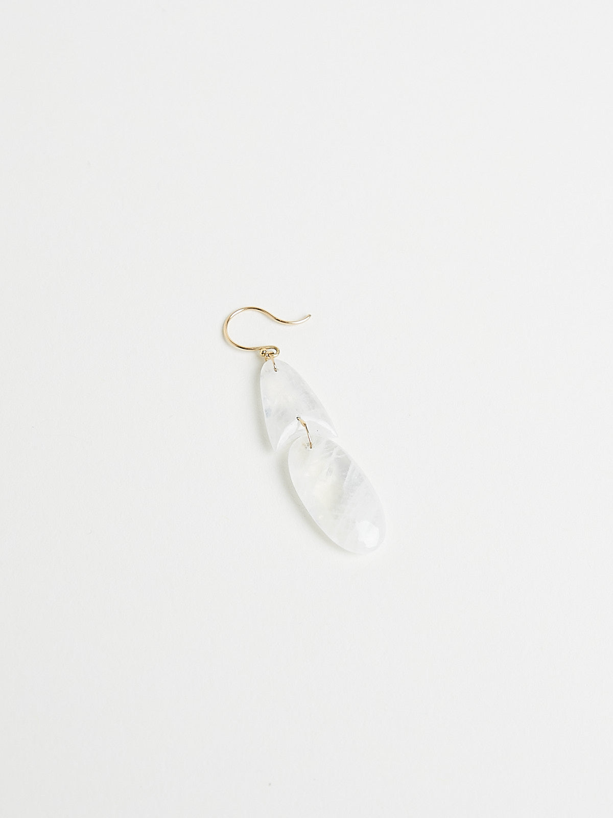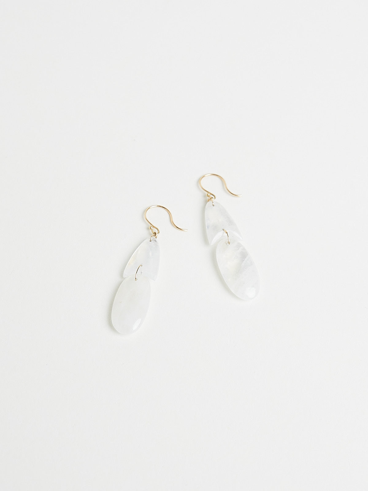 Handmade small earrings in 18k yellow gold with hand-cut arrowheads in moonstone. Features an ear wire backing.