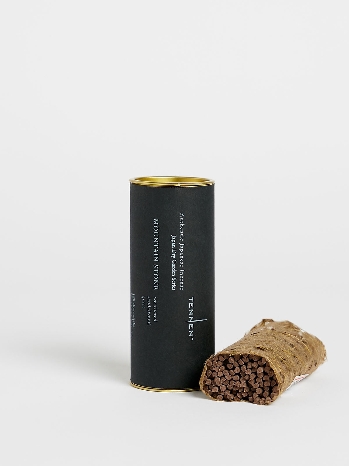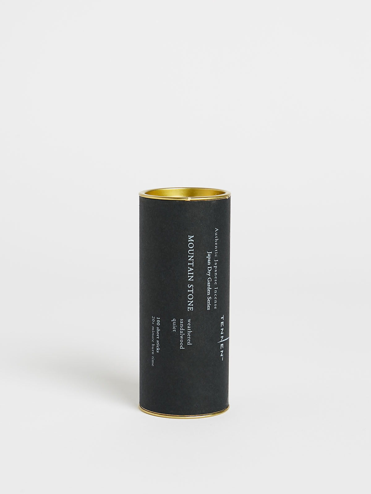 Set of 100 short incense sticks. Comes in a metal cylinder.
