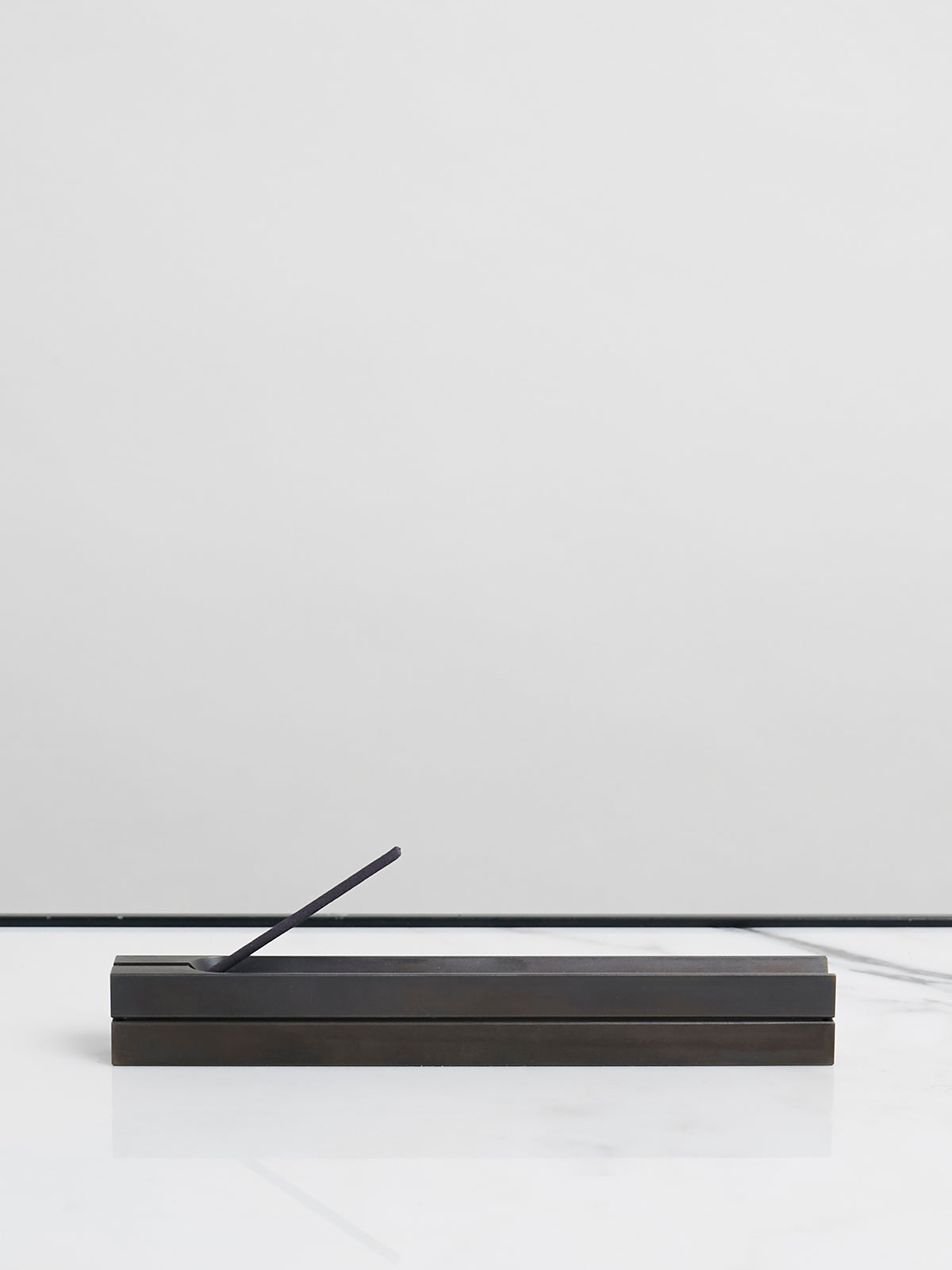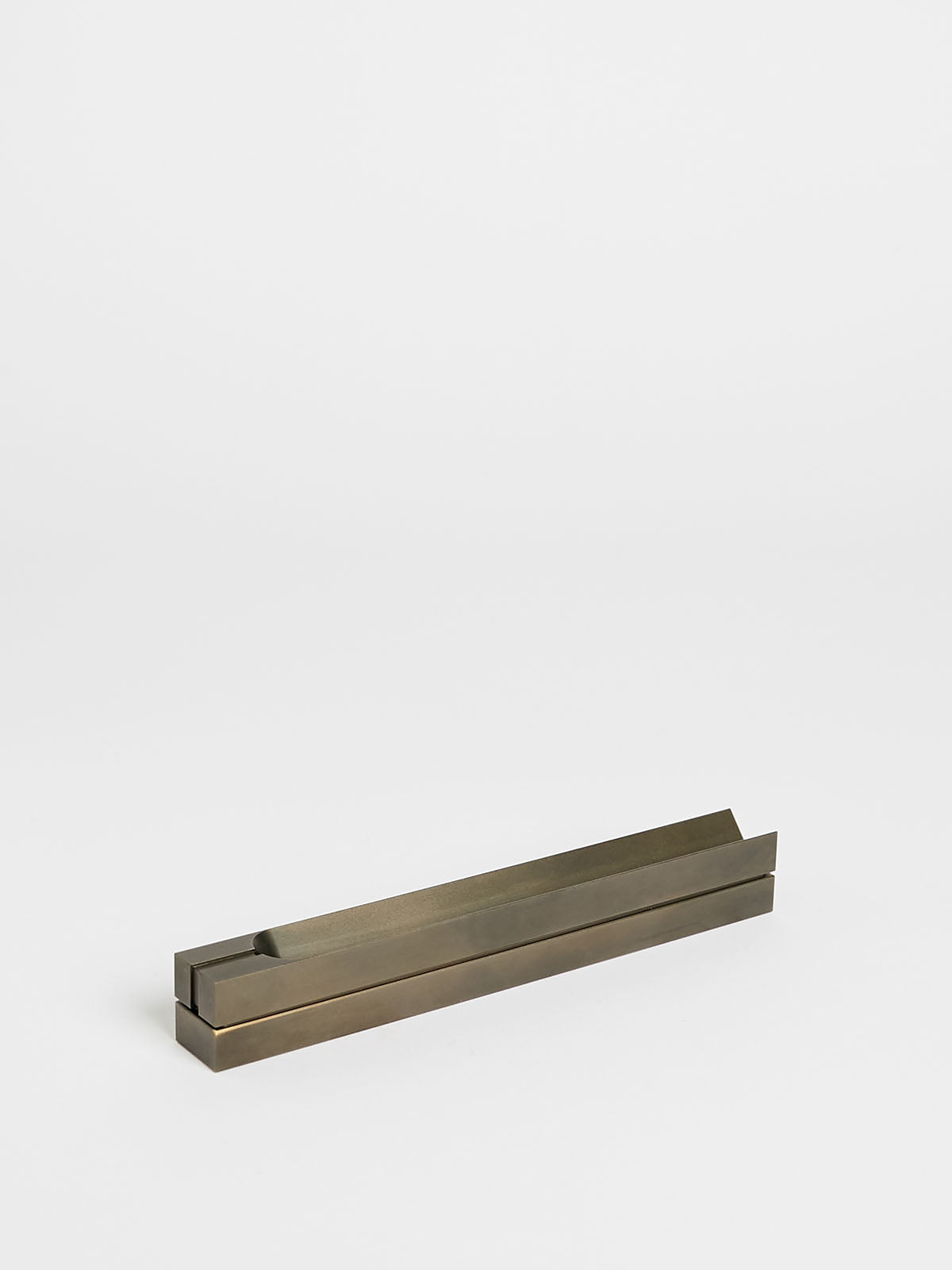 Box incense burner made from solid brass with a blackened finish. Holds short and long incense sticks. Comes in a wooden box. Made in Arizona.