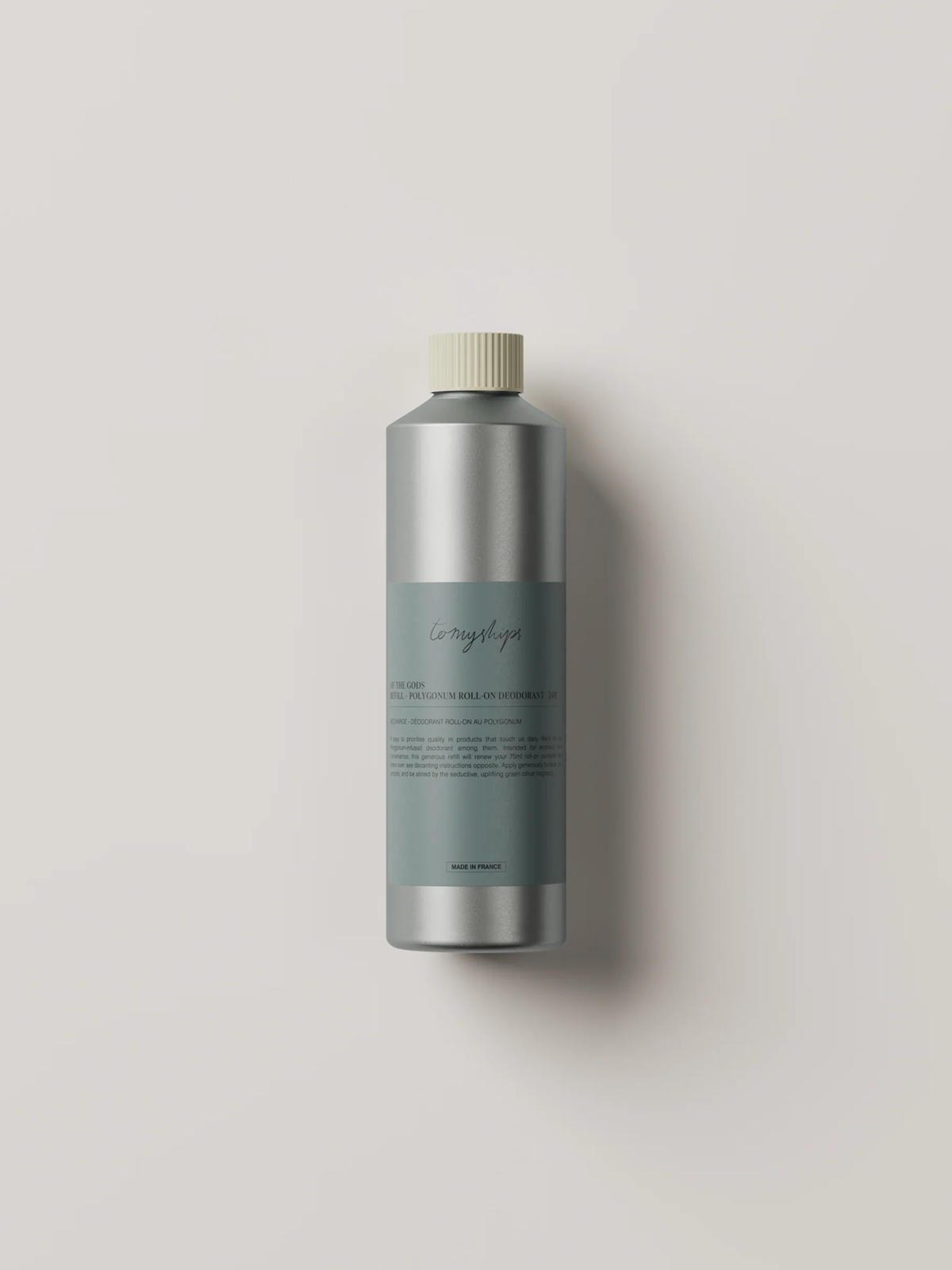 Generous refill of To My Ships roll-on deodorant, that lasts for 24 hours, with a discreetly lingering green citrus fragrance that is 99.97 per cent naturally derived. Dermatologically tested and free of aluminium salts, this product is suitable for natural, waxed and shaved armpits alike, and for sensitive skin.